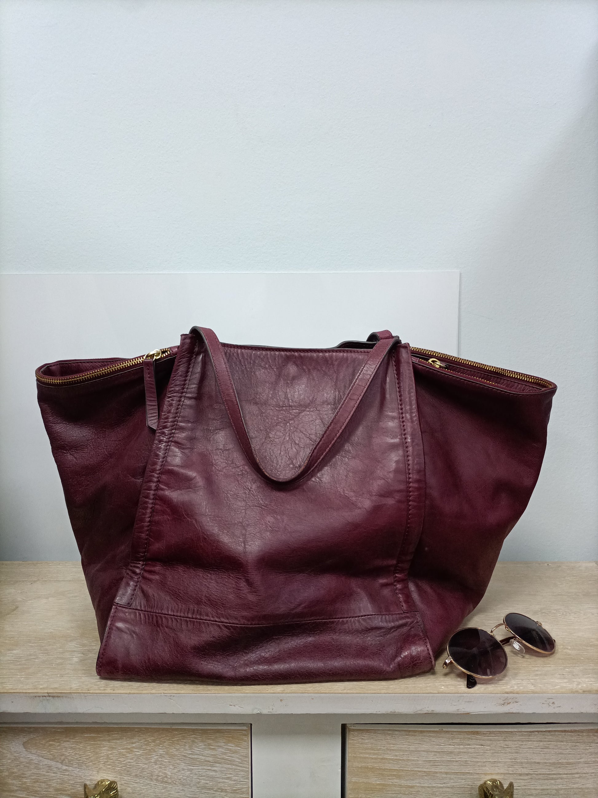 Maxi burgundy leather shopper bag. Tare: has some marks on the leather.