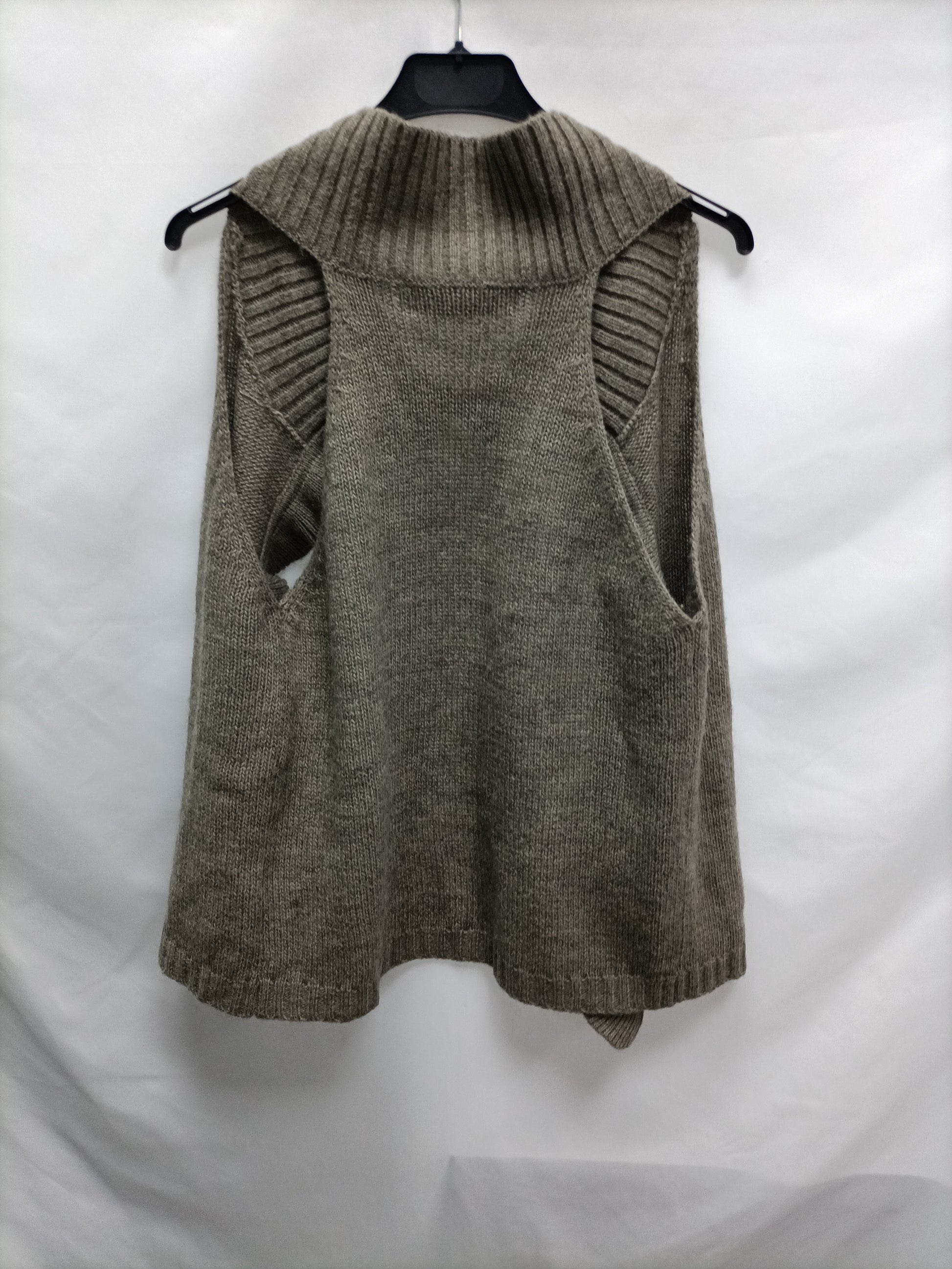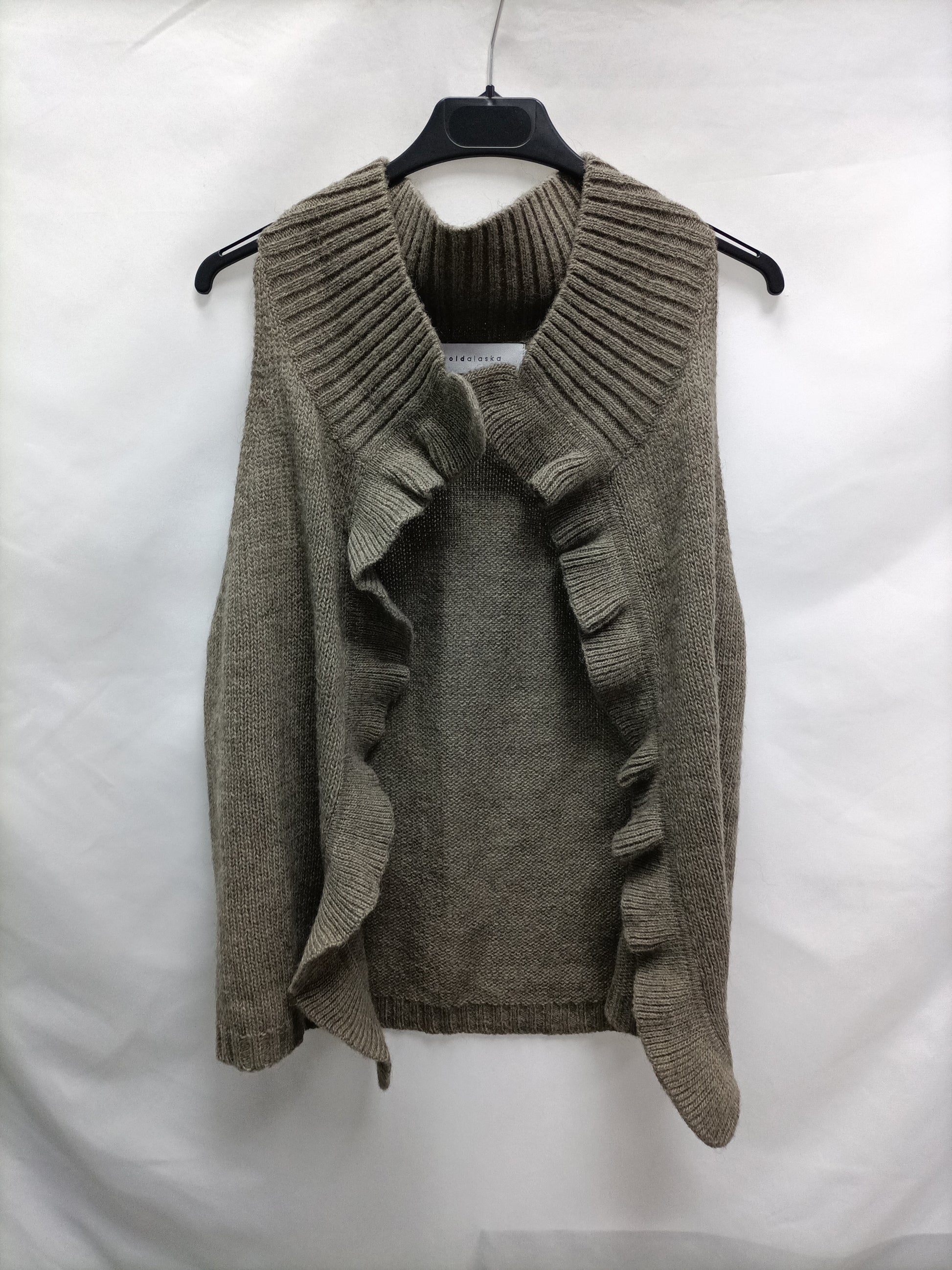 Brown knitted vest with a ruffle on the front. Elastic. Length 64 cm.