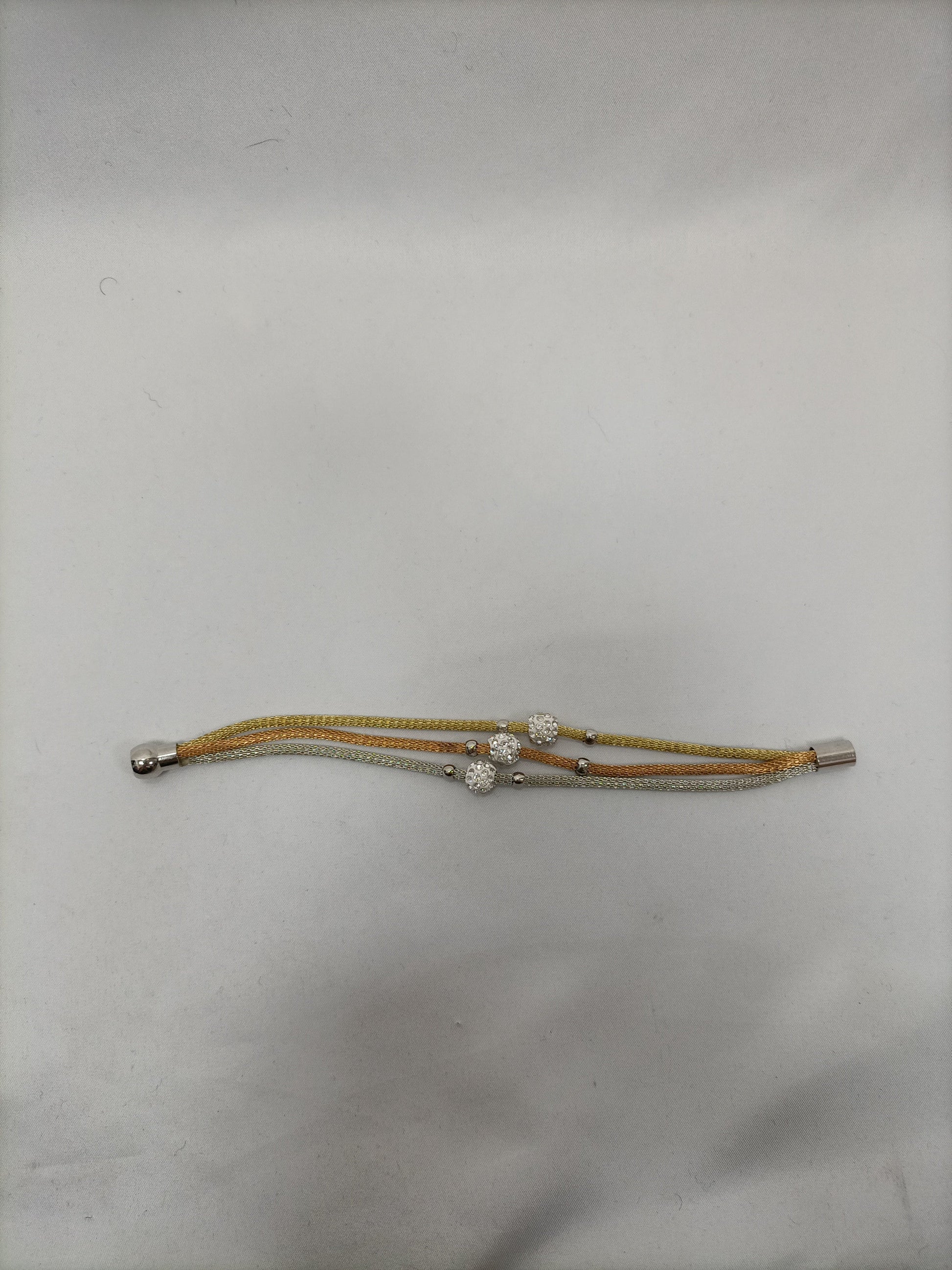 Gold, pink, and silver strap bracelet with rhinestone beads