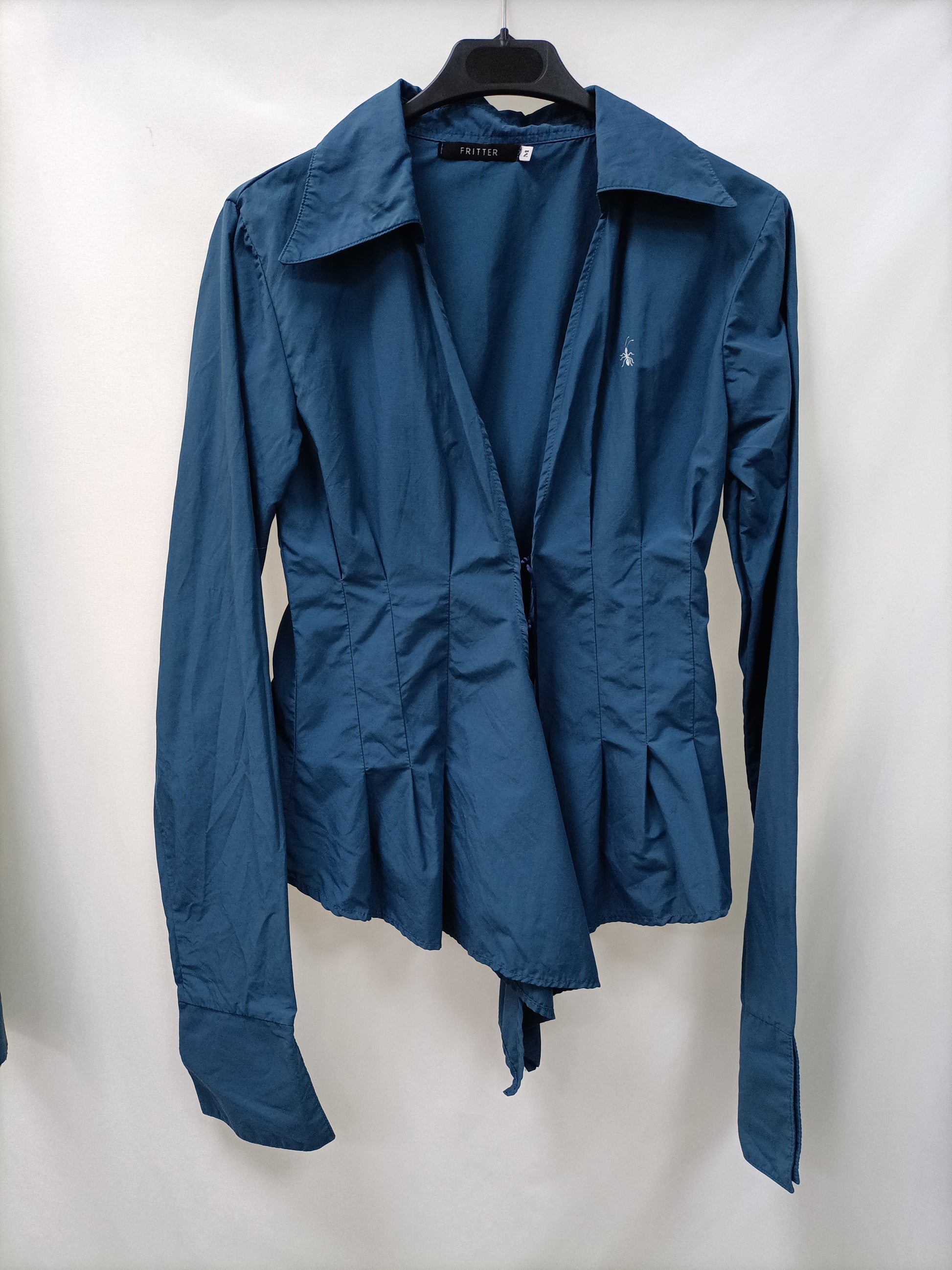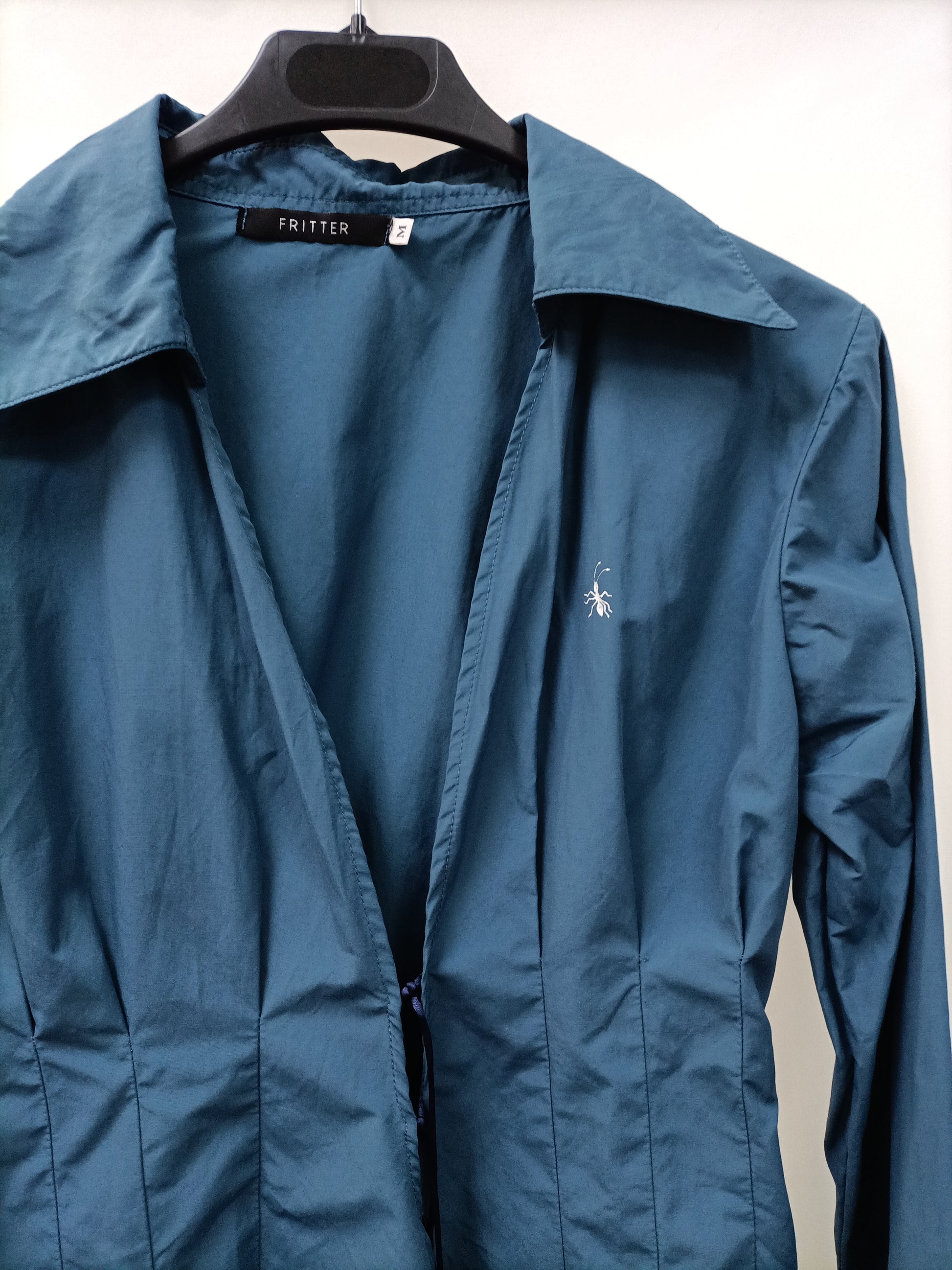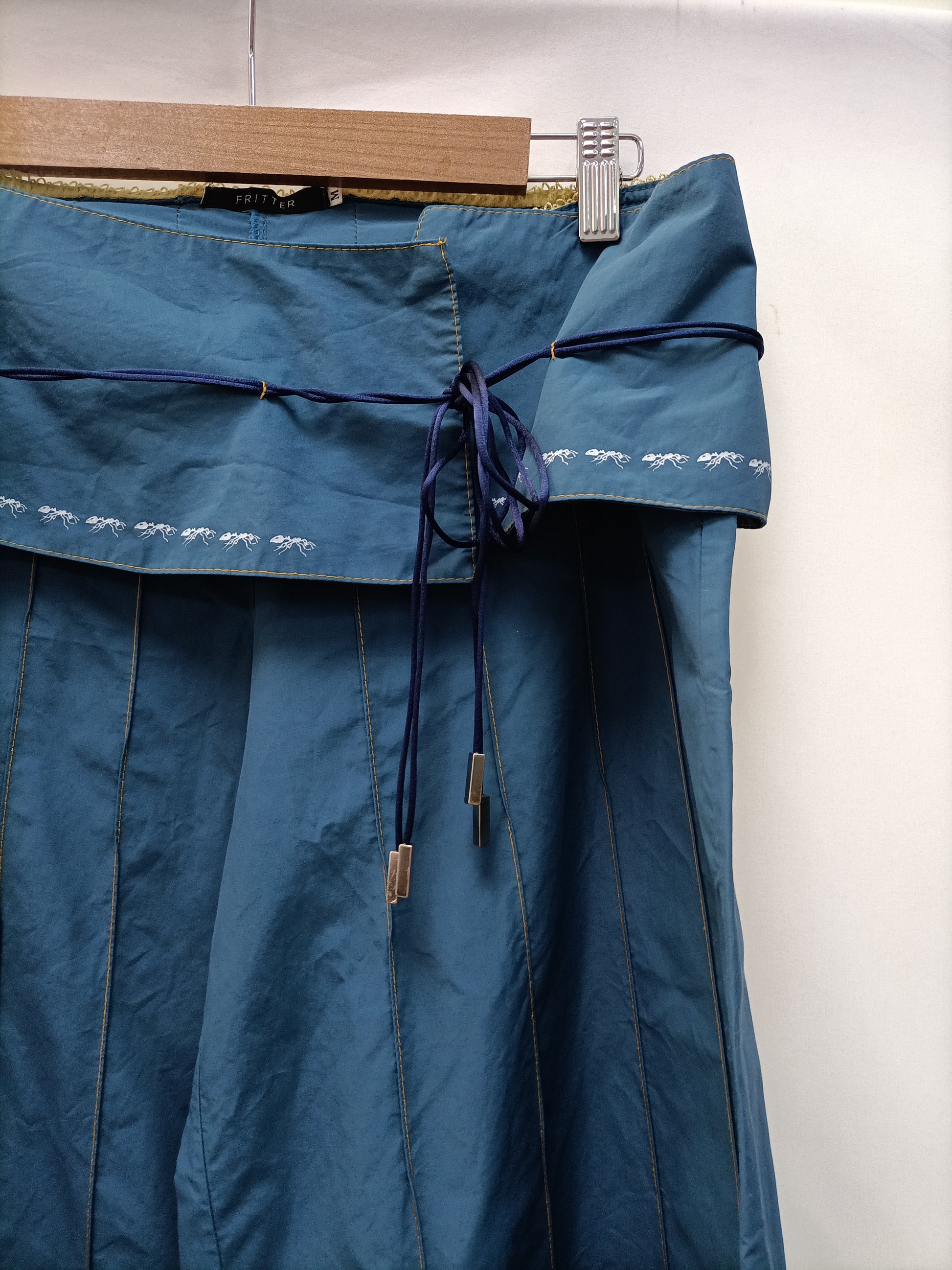 A total look featuring a blue blouse with a bow and culottes with a sash. Blouse: Armpit to armpit 42 cm, length 60 cm. Pants: Waist 38 cm, length 78 cm.