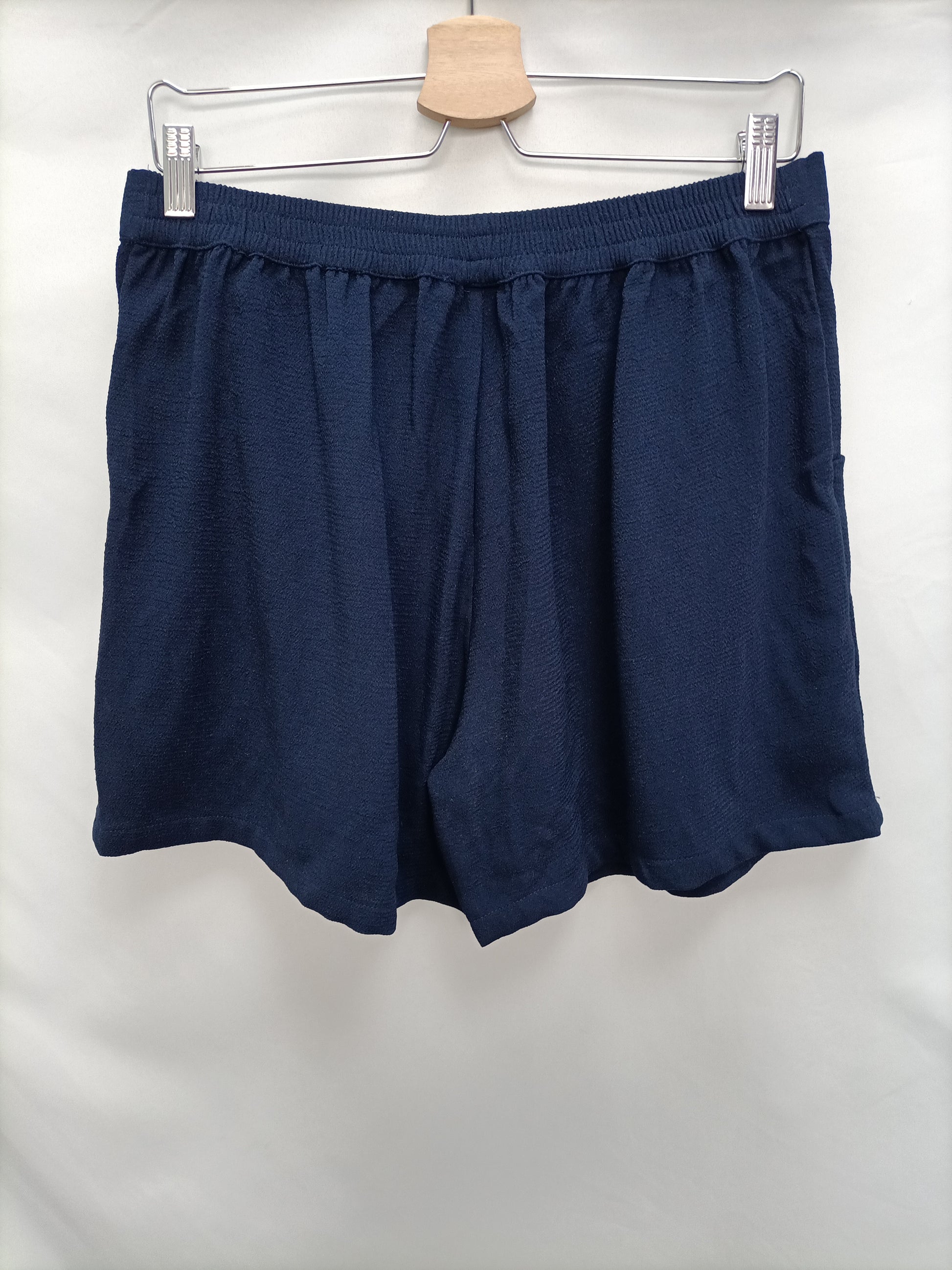 Navy blue fluid shorts. Elastic waist. Length 40 cm