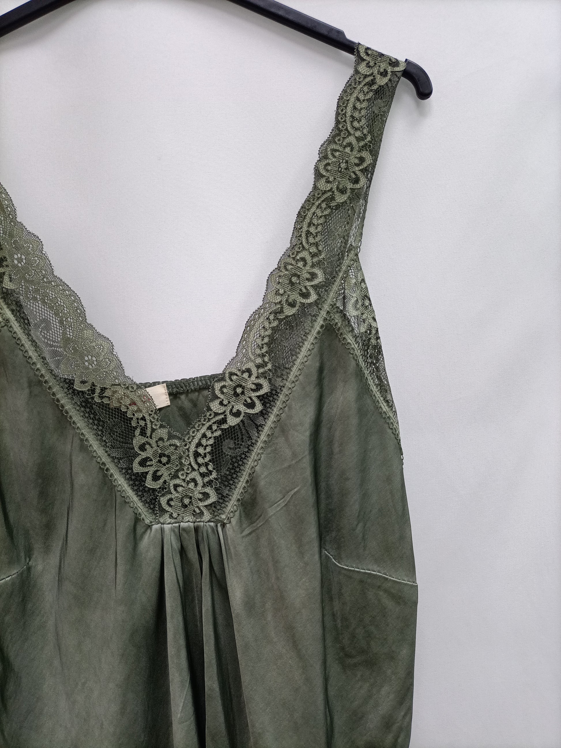 Khaki green lace lingerie top. 50 cm from armhole to armhole, 69 cm long.