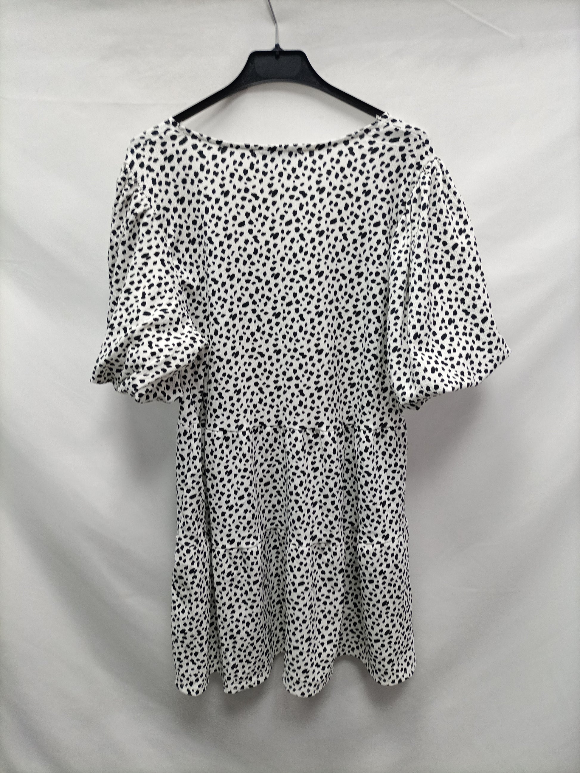 Short animal print dress with puff sleeves. Stretchy . Length 84 cm.
