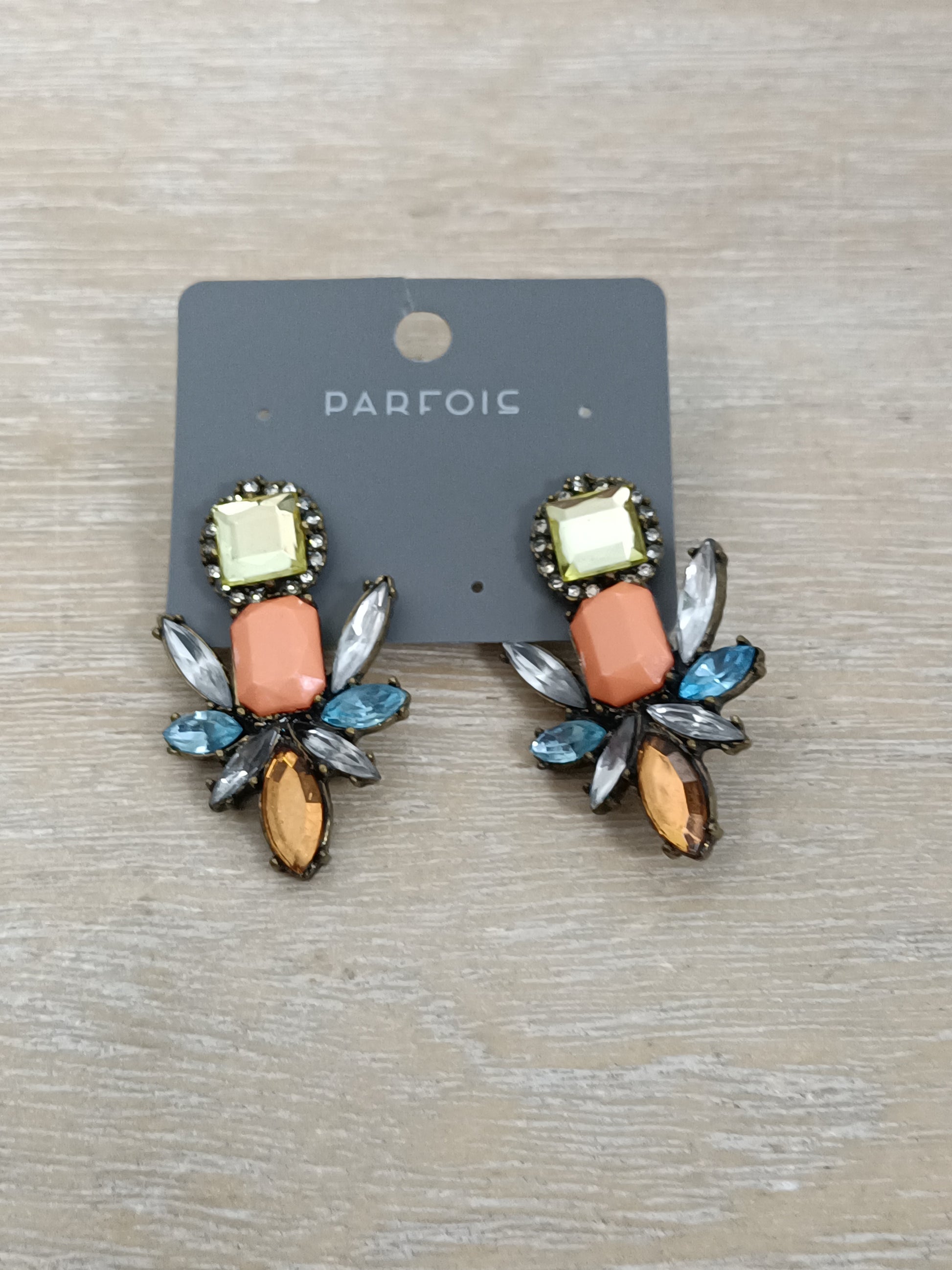 NUEVO CON ETIQUETA. Pendientes de pedrería en tonos naranjas. De tuerca