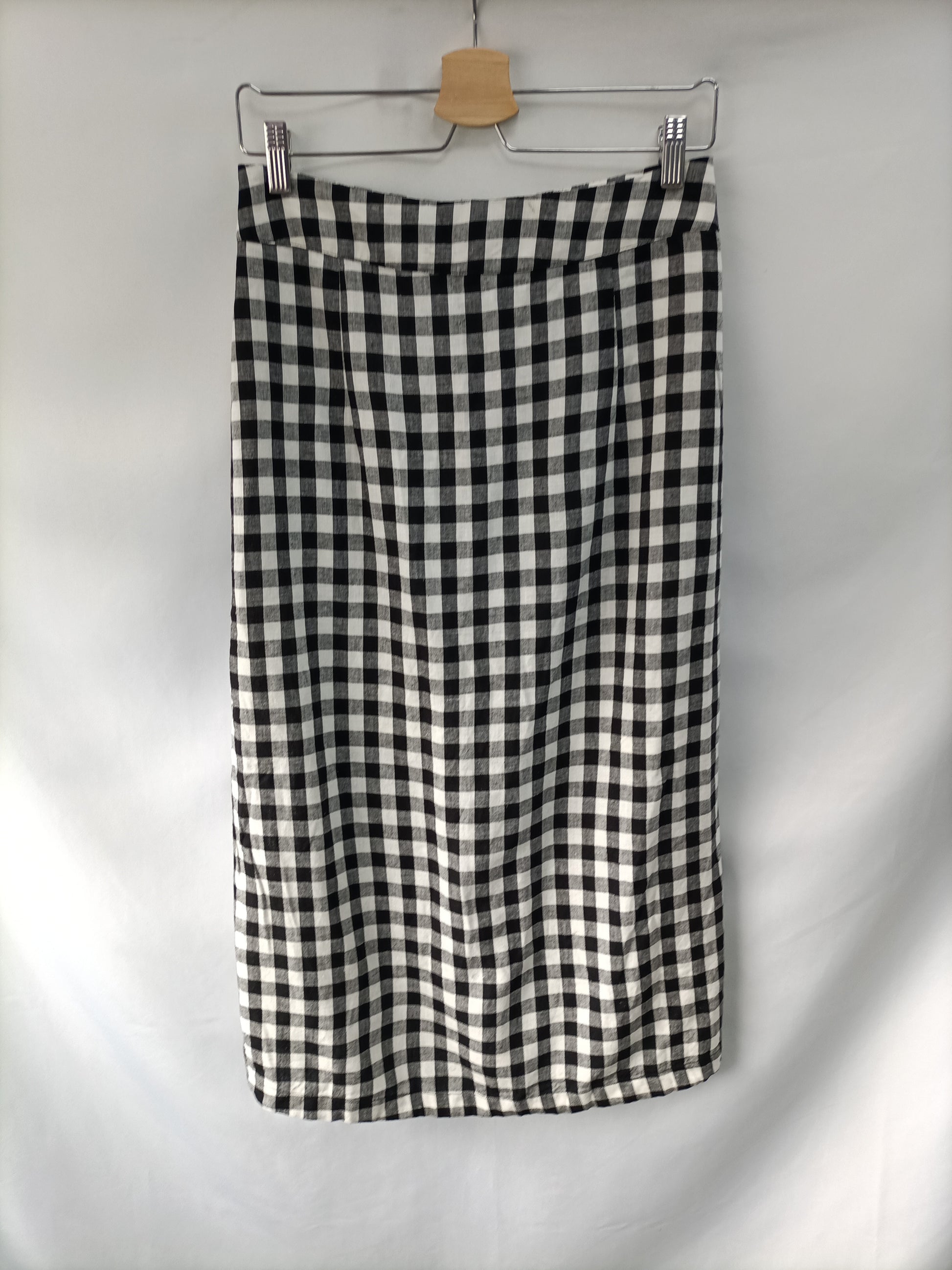 Buttoned gingham midi skirt. Non-elastic. Waist 37 cm, length 83 cm.