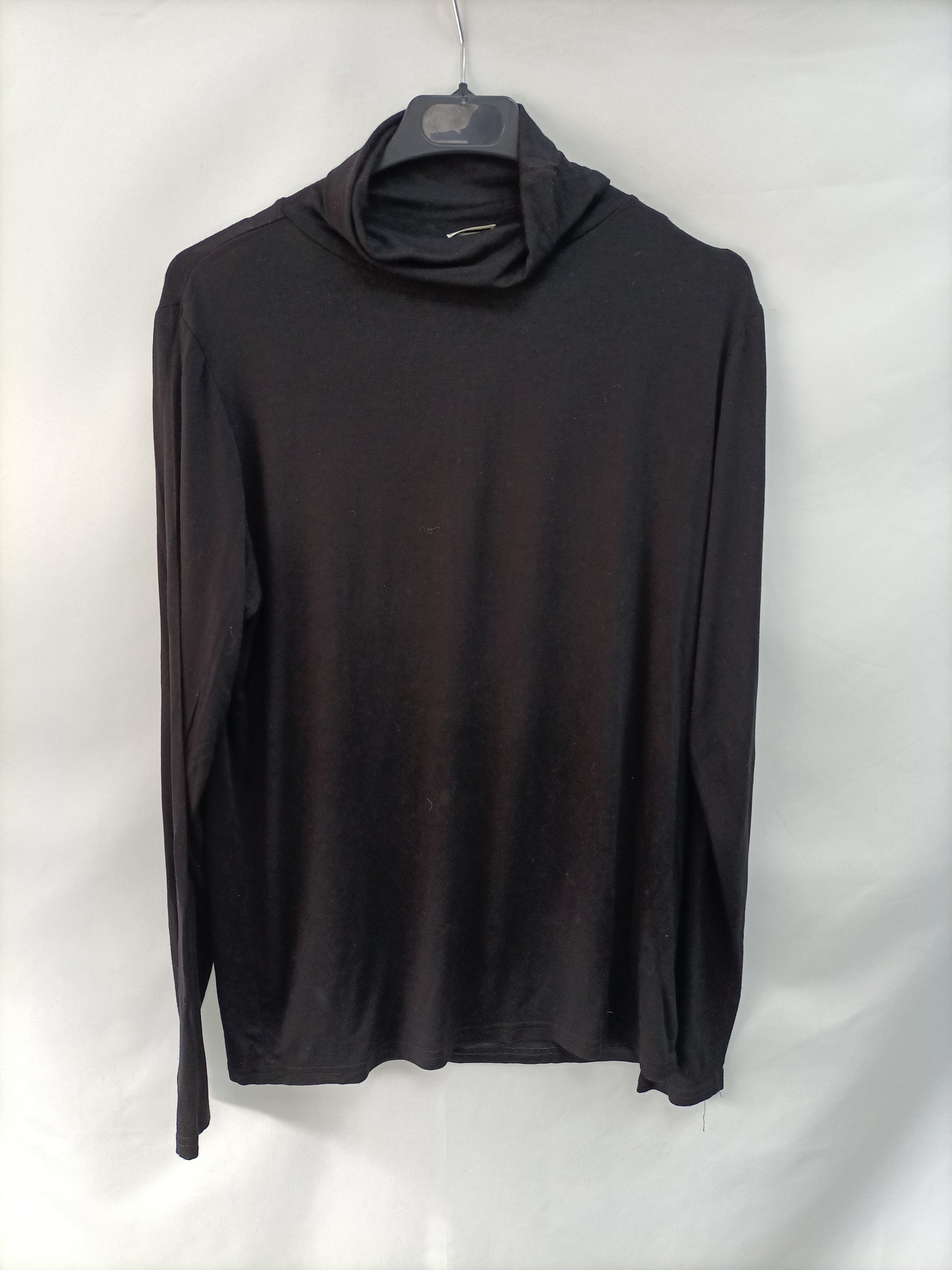 Black, flowing, fine T-shirt with a flowing high neck . Length 67 cm.