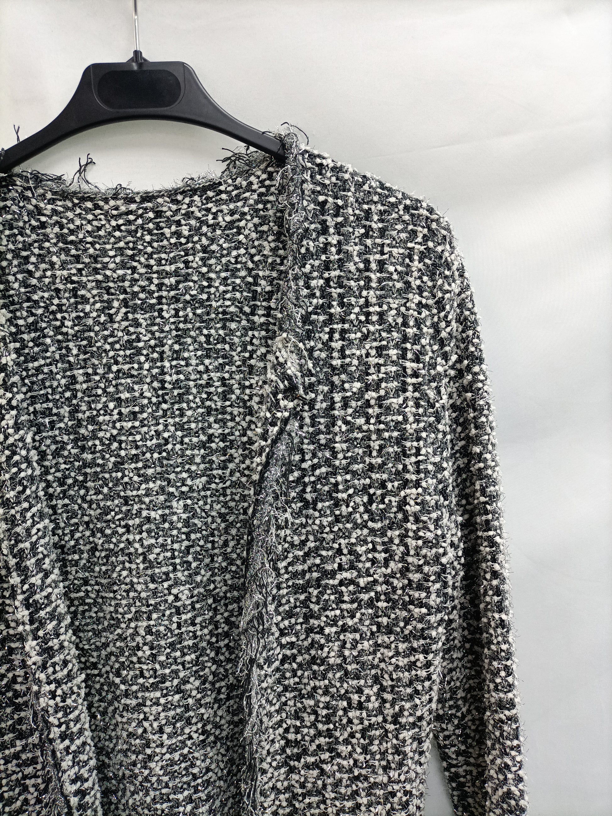 Cardigan en tonos grises y negros tejido estilo tweed.argo 71 cm