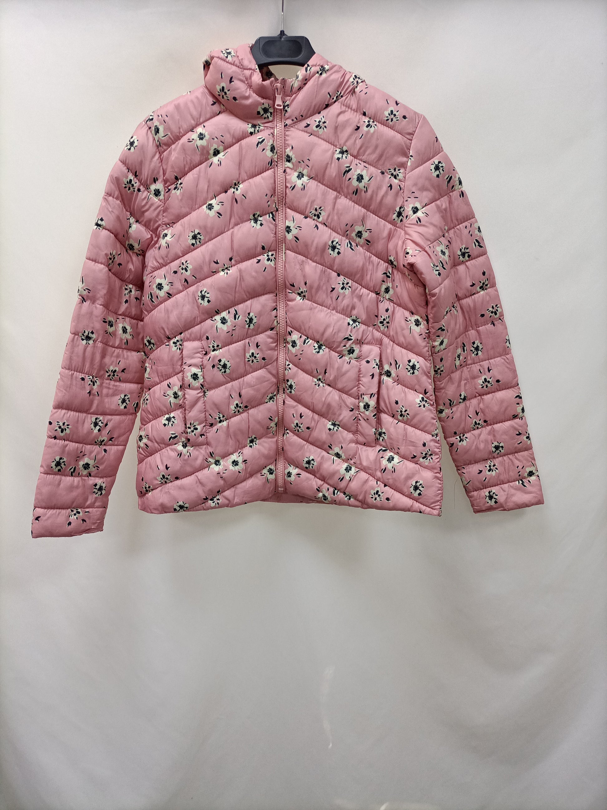 Pink feathers with light flowers. No stretch. From armpit to armpit 46 cm, length 59 cm. Tare: minor wear on the lapel.