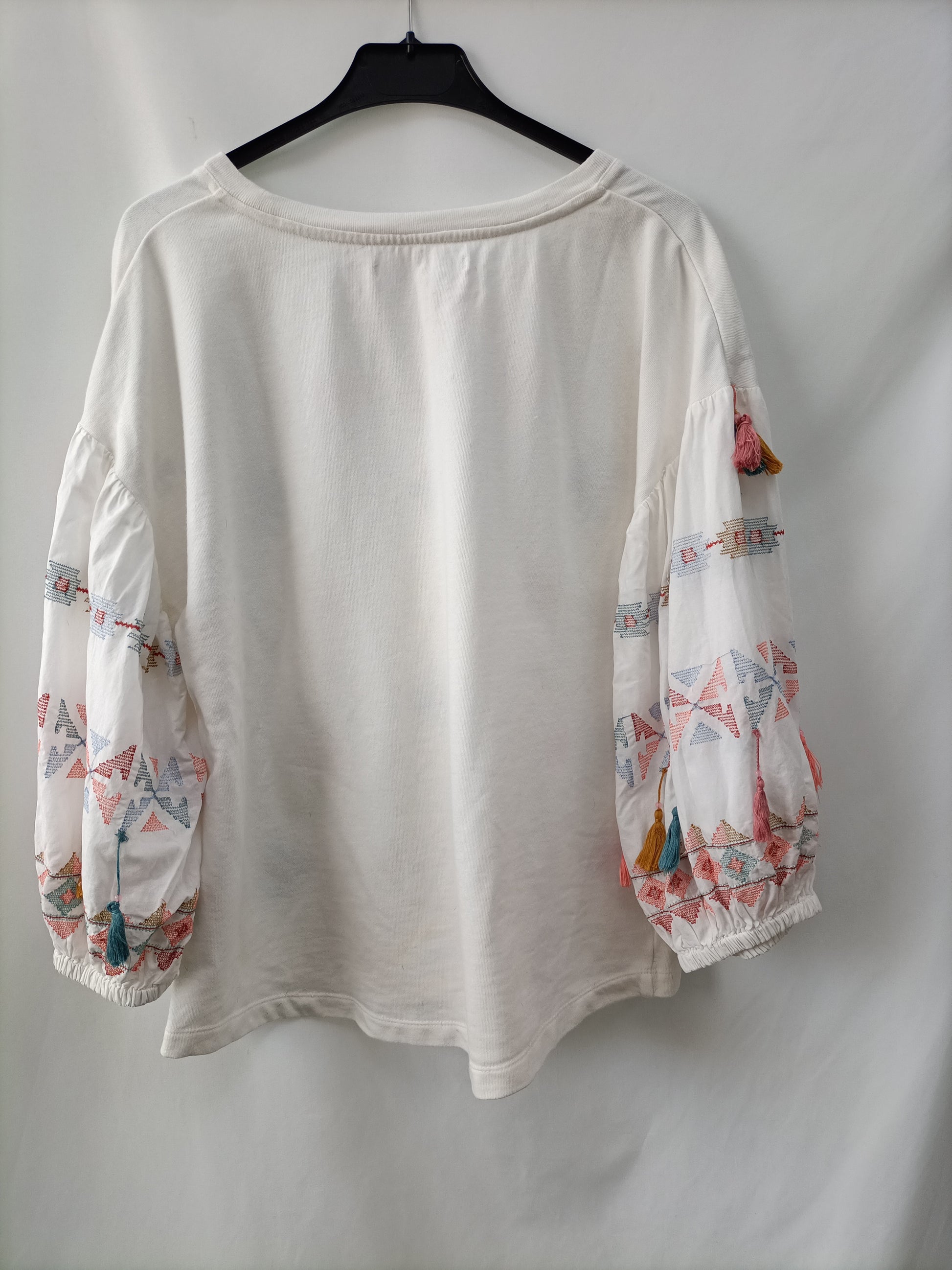 White T-shirt embroidered with friends. Puffed blouse fabric. Length 60 cm.