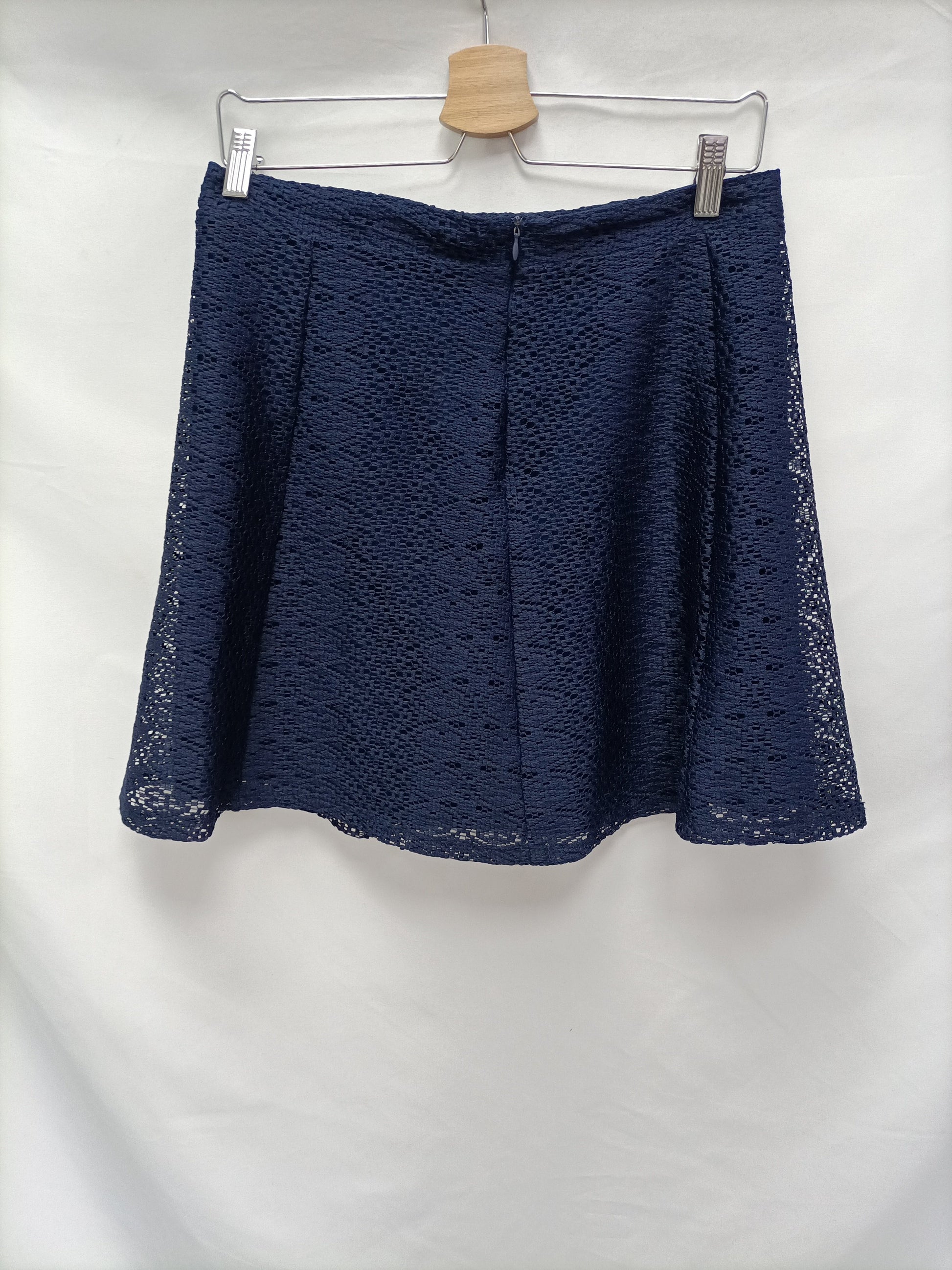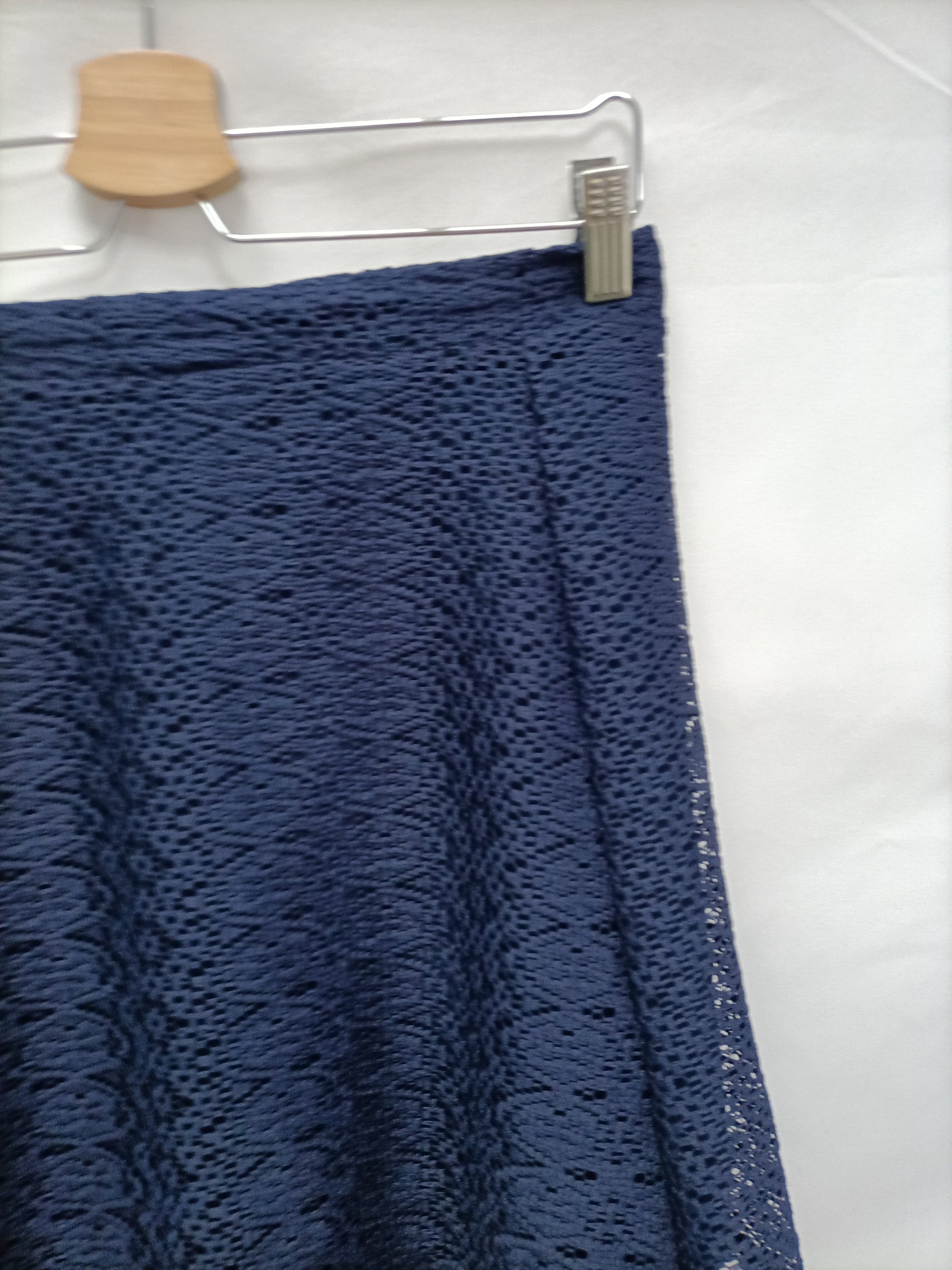 Short, flowing blue lace skirt. Non-stretchy. Waist 39 cm. Length 46 cm.