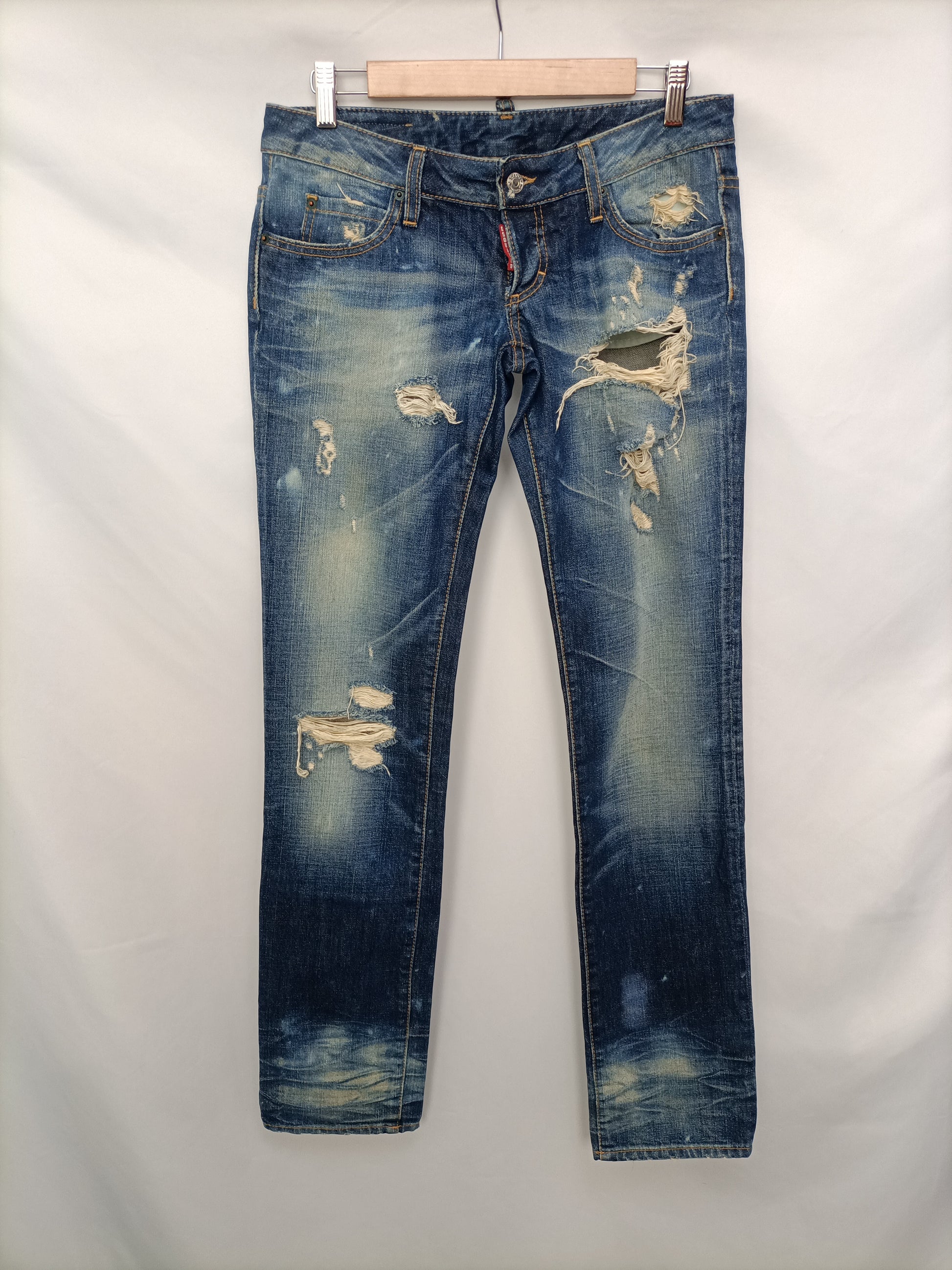 Retro-style ripped denim pants. Non-stretch. Waist 42 cm. Length 105 cm.