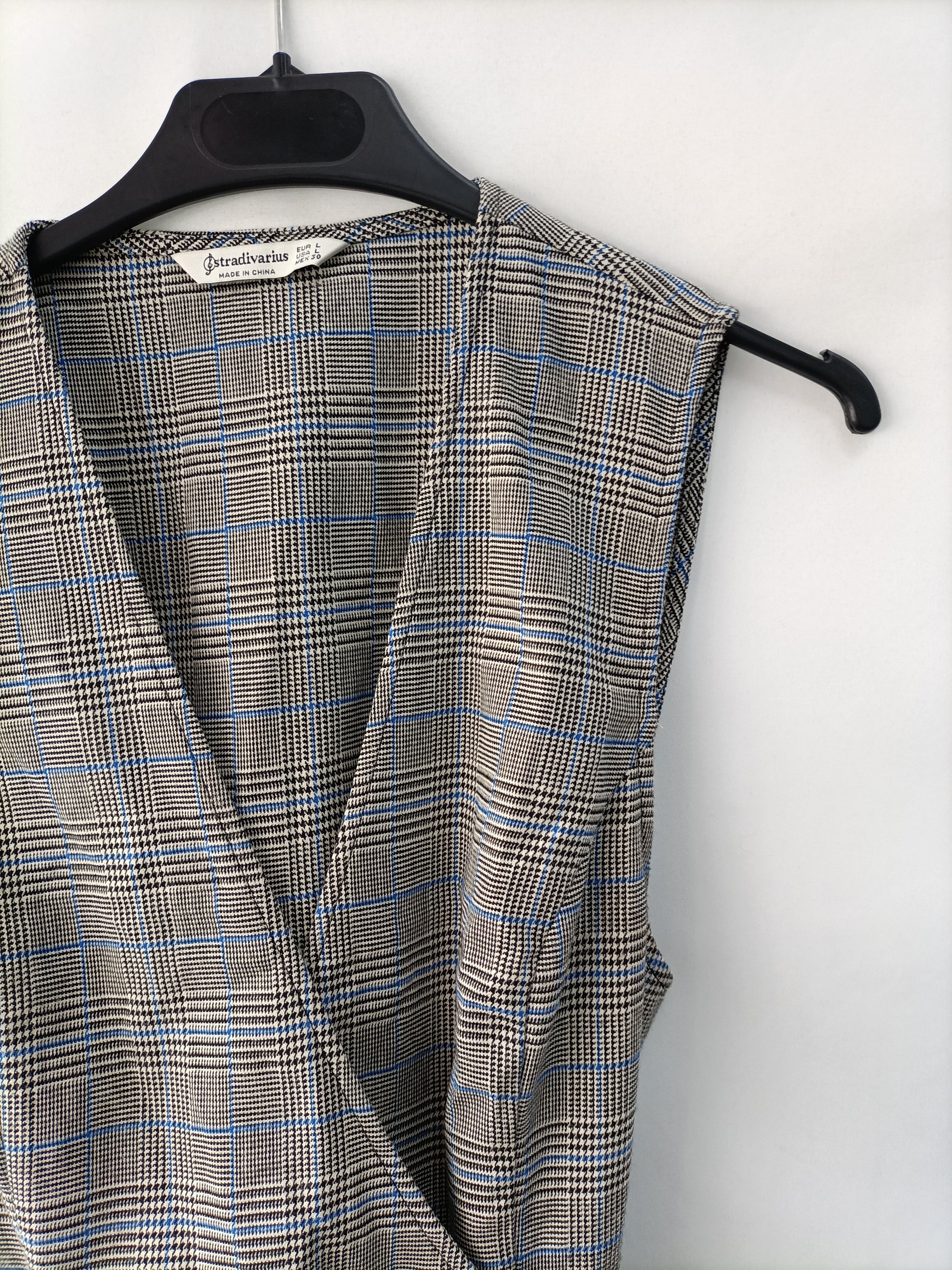 STRADIVARIUS. Vestido cuadros cruzado T.l