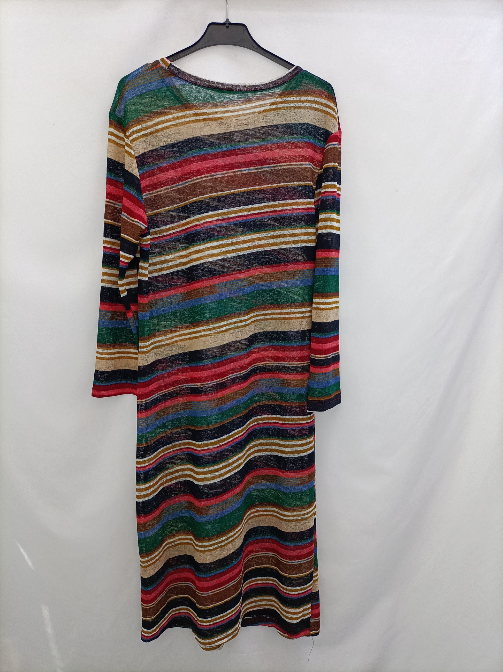 Semi-sheer striped midi dress. Stretch knit. Length 111 cm.