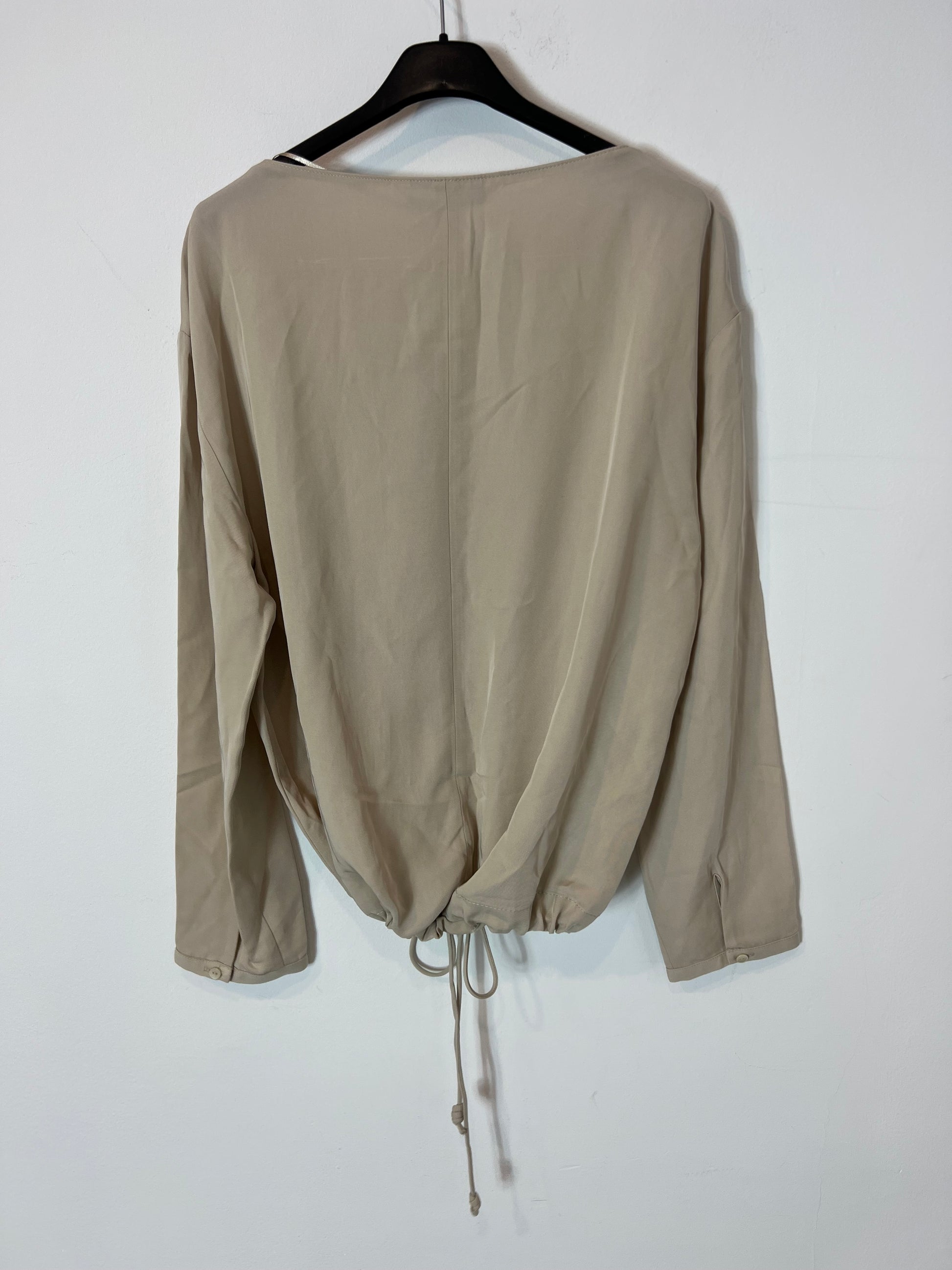 NEW WITH TAG. Beige blouse with adjustable waist.