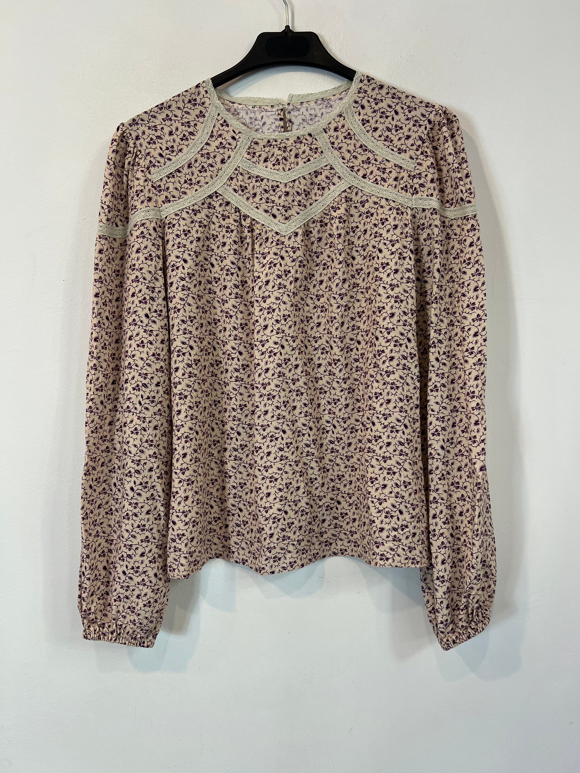 Beige blouse with flowers and lace... from armpit to armpit 50 cm long 60 cm