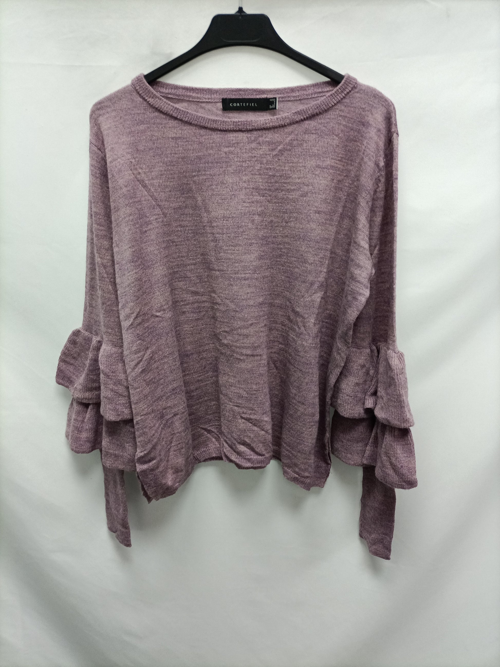 CORTEFIEL. Purple mottled sweater with ruffle detail.