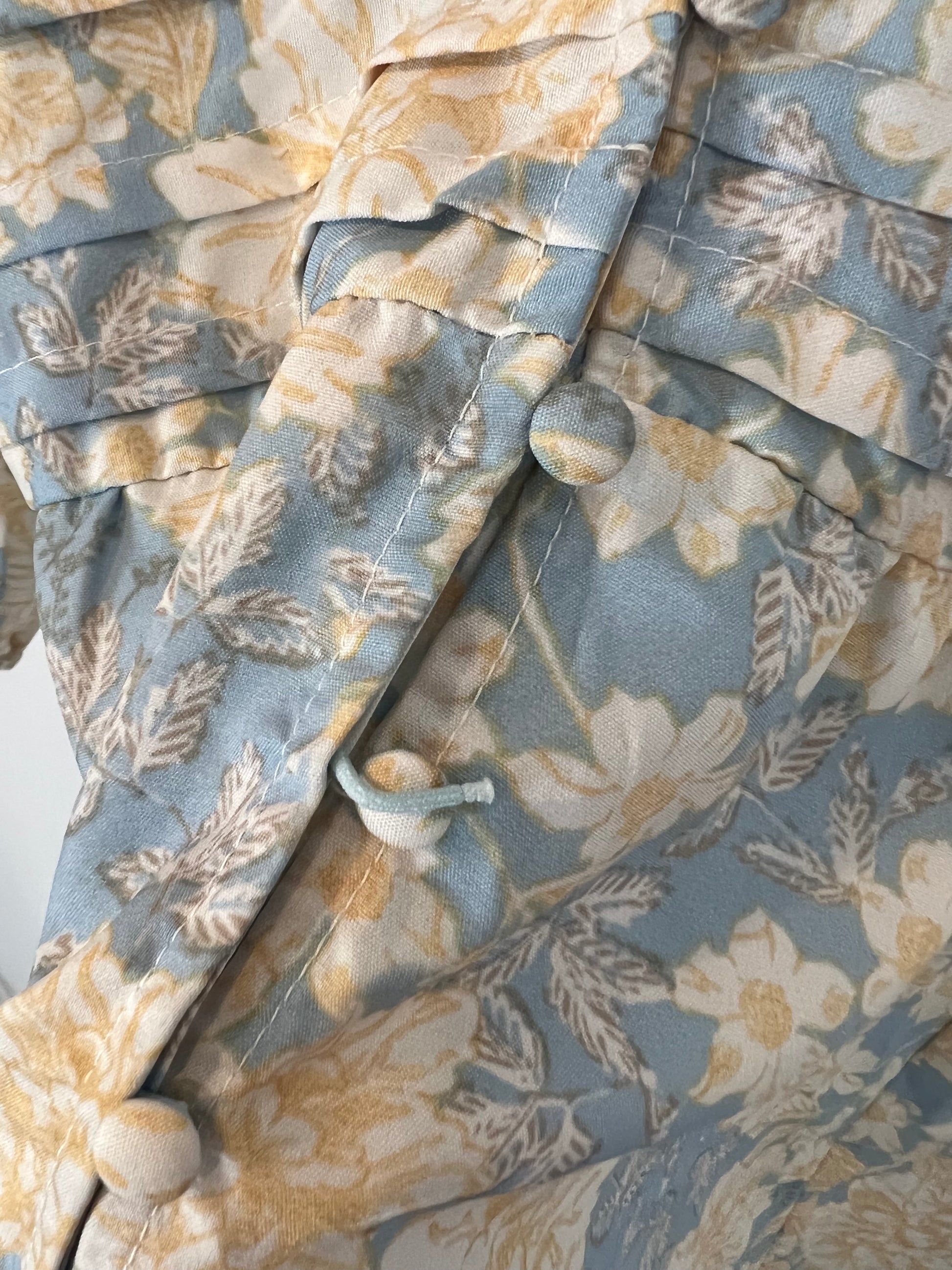 Pastel midi dress. 132 cm long. Tare: one broken buttonhole.