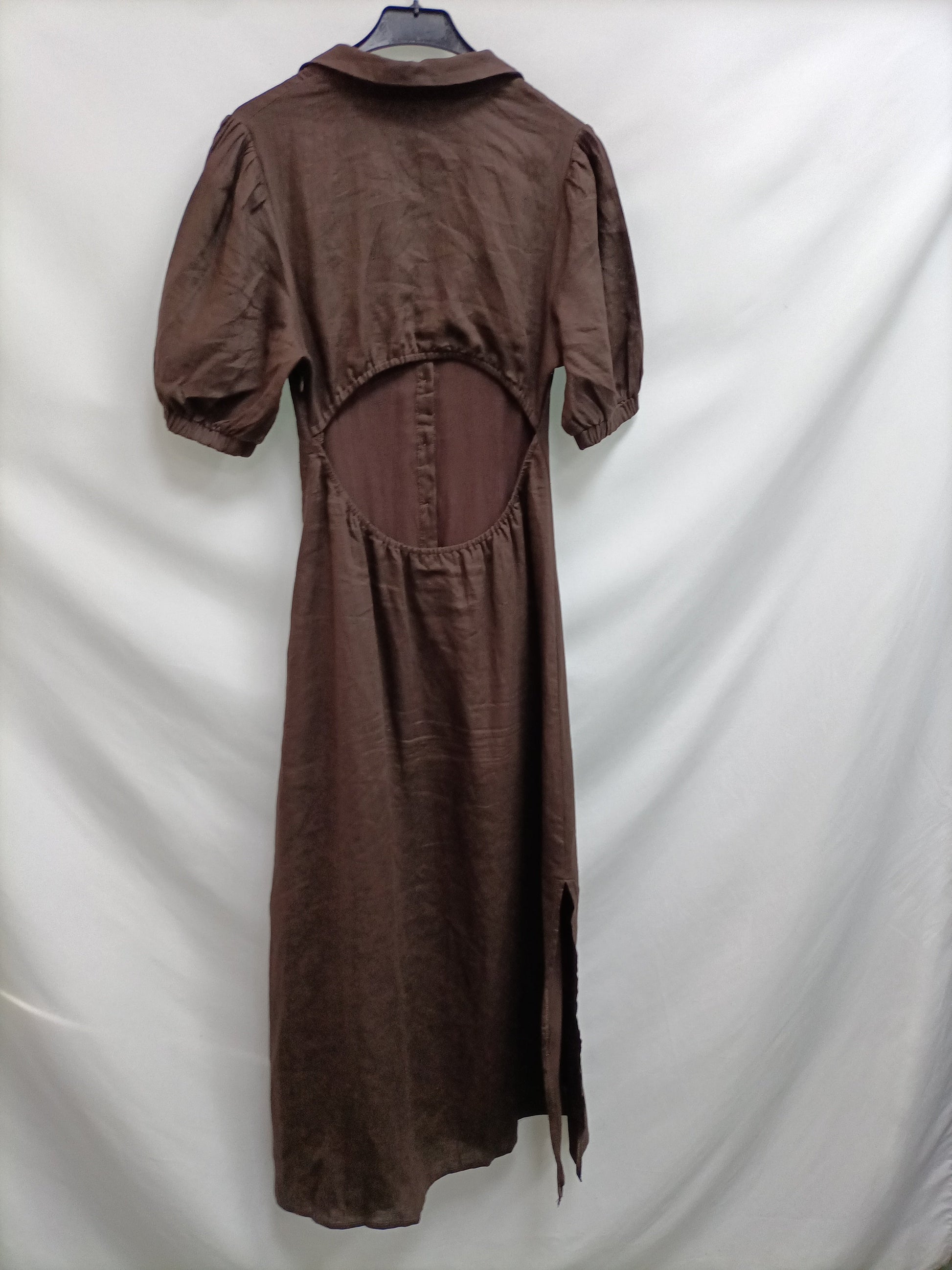 Linen-style woven dress with a back slit. Armpit to armpit 37 cm, length 135 cm.
