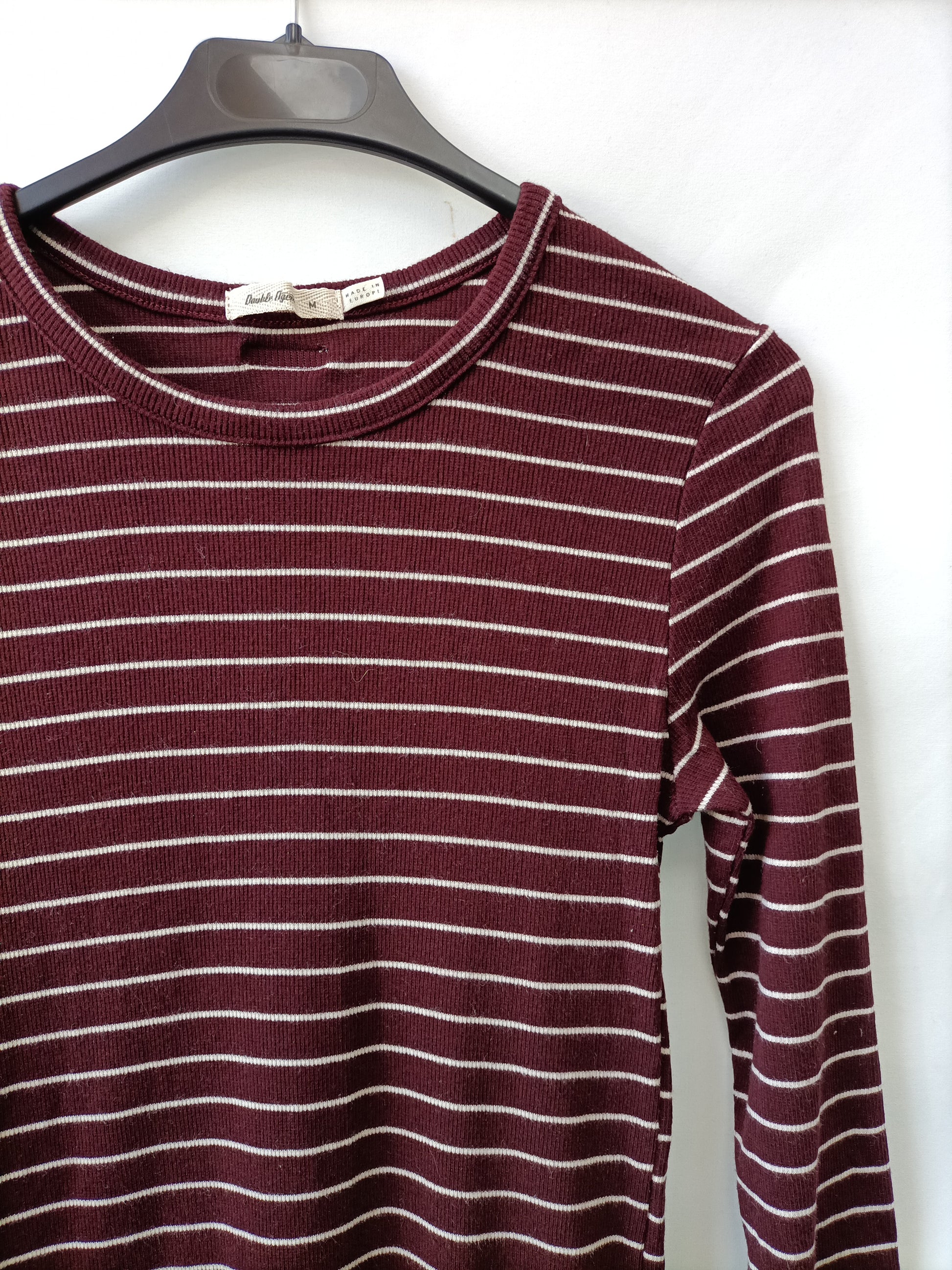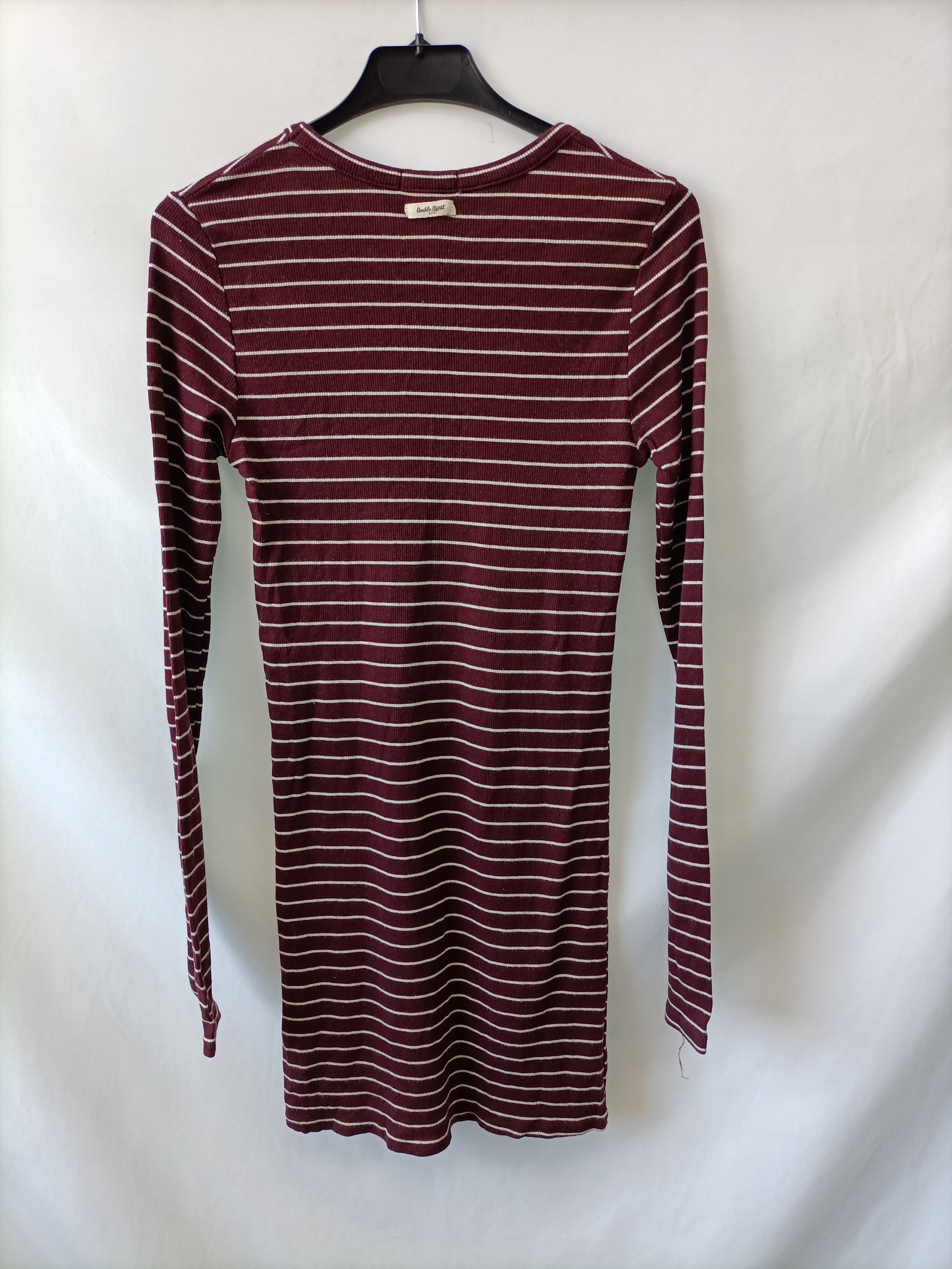 Double Agent. Burgundy bodycon dress with white stripes. Stretchy. Length 81 cm.
