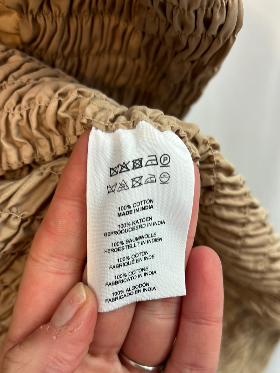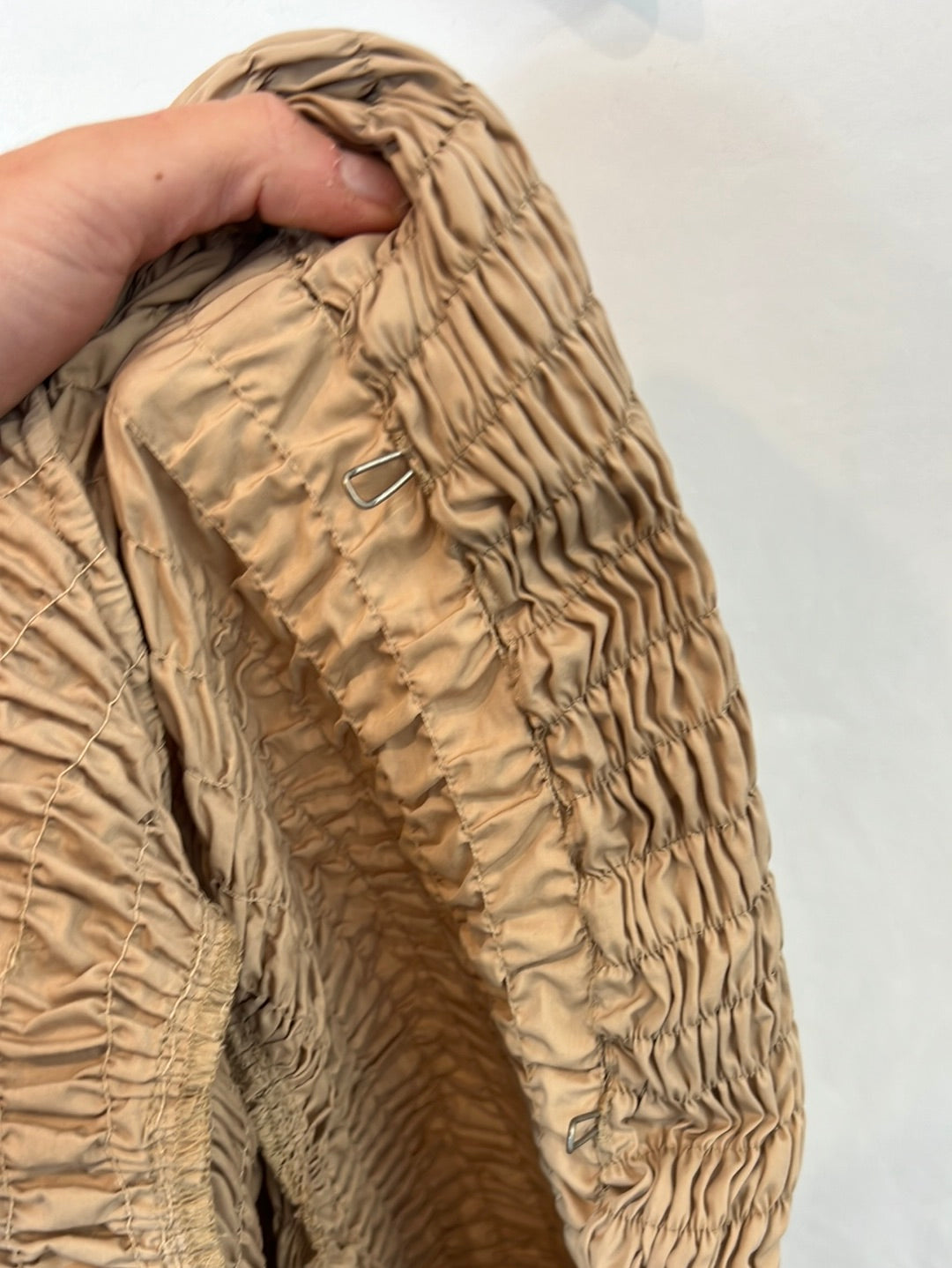 Dark beige gathered cotton jacket. Armpit to armpit 48cm, shoulders 40cm, back length 57cm