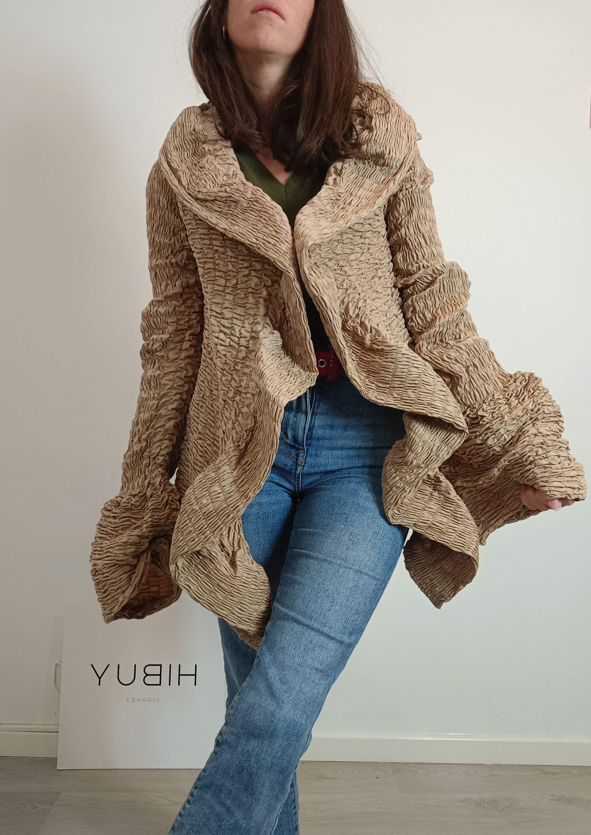 DRIES VAN NOTEN. Beige gathered jacket. TS
