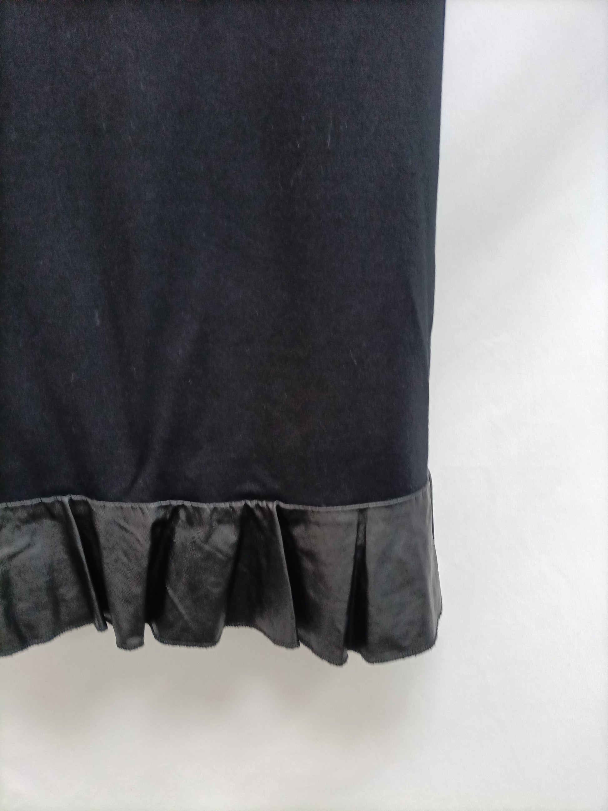 Short stretch dress with faux leather ruffle. Length 84 cm.