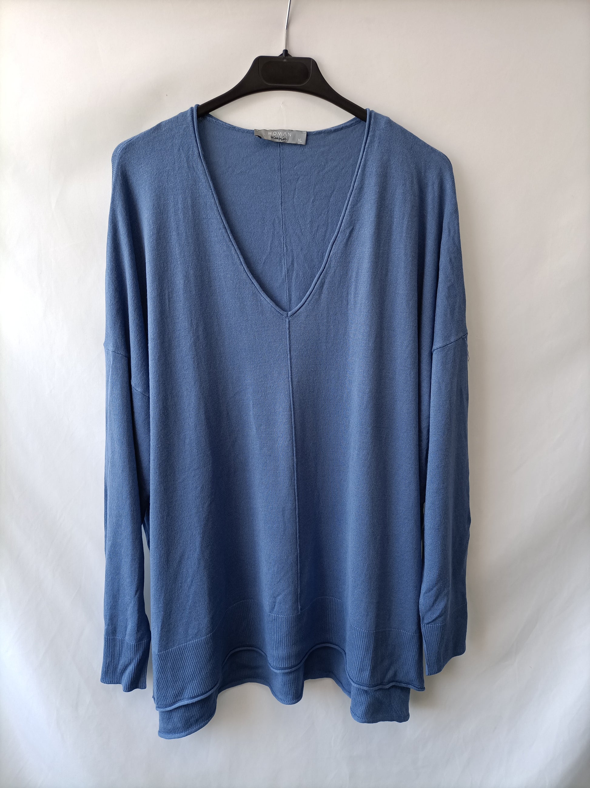 El Corte Inglés. Thin, flowing blue sweater. Stretchy. Length 74 cm.