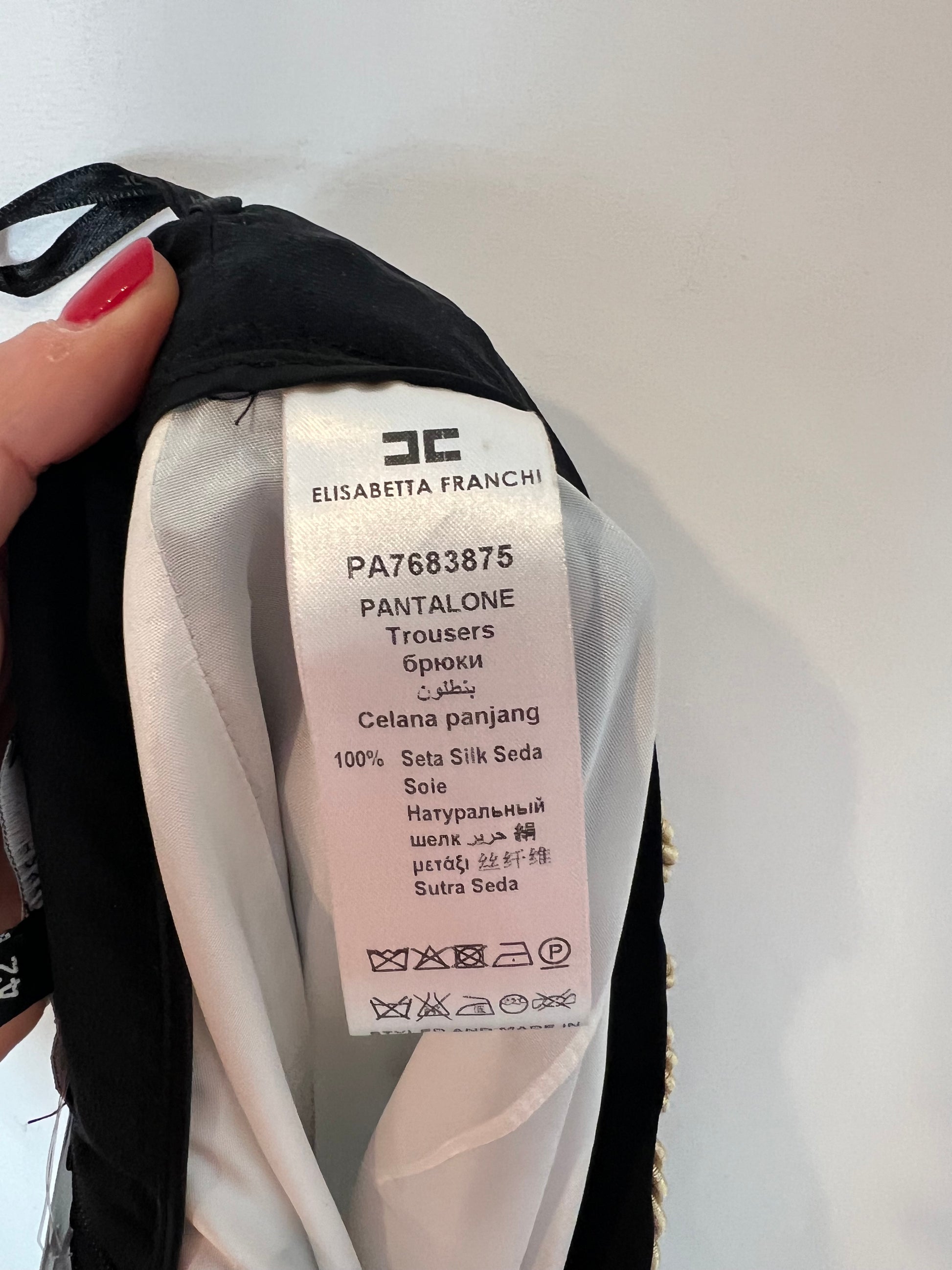 ELISABETTA FRANCHI. Striped palazzo silk pants T.42