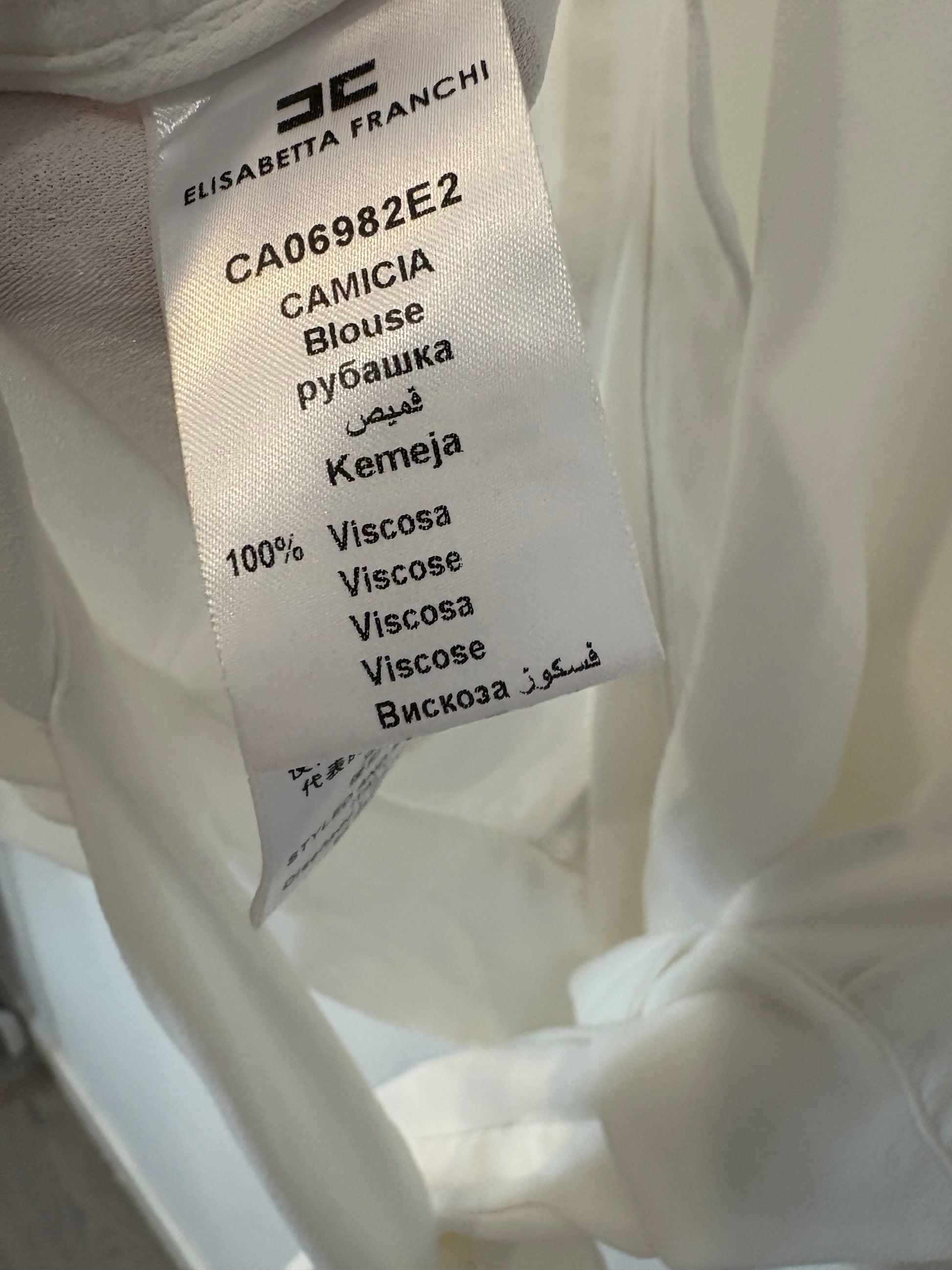 ELISABETTA FRANCHI. Top blanco aberturas/pechera