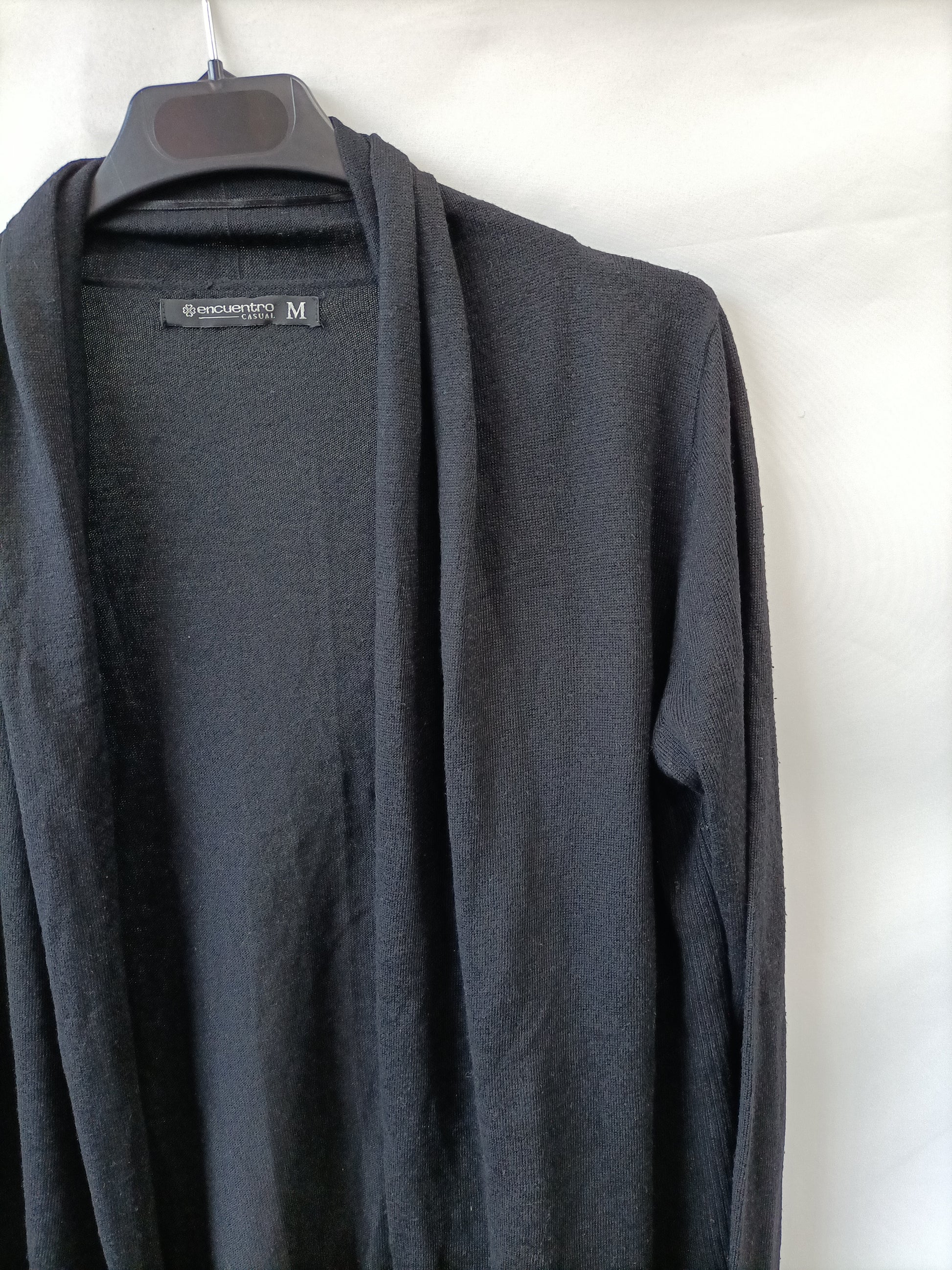 Meeting. Thin, flowing black cardigan. Stretchy. Length 67 cm.