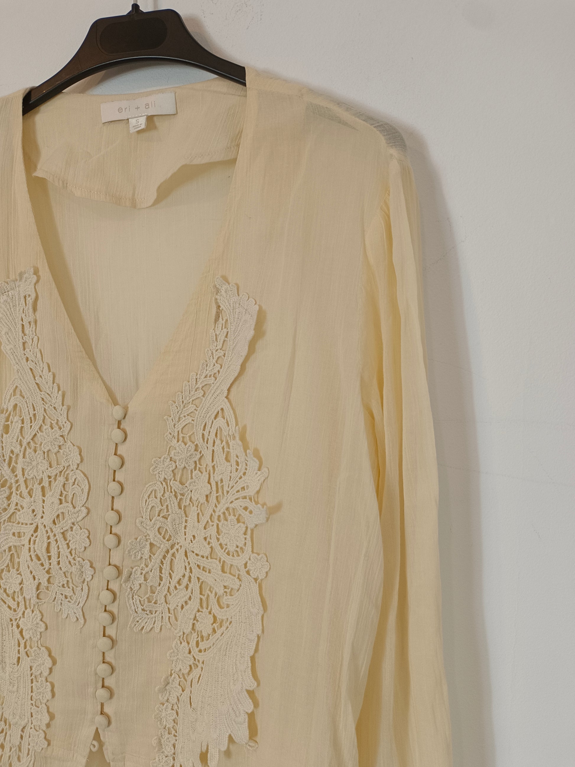 ERI+ALI (&OTHER STORIES). Beige button-down blouse with lace Ts