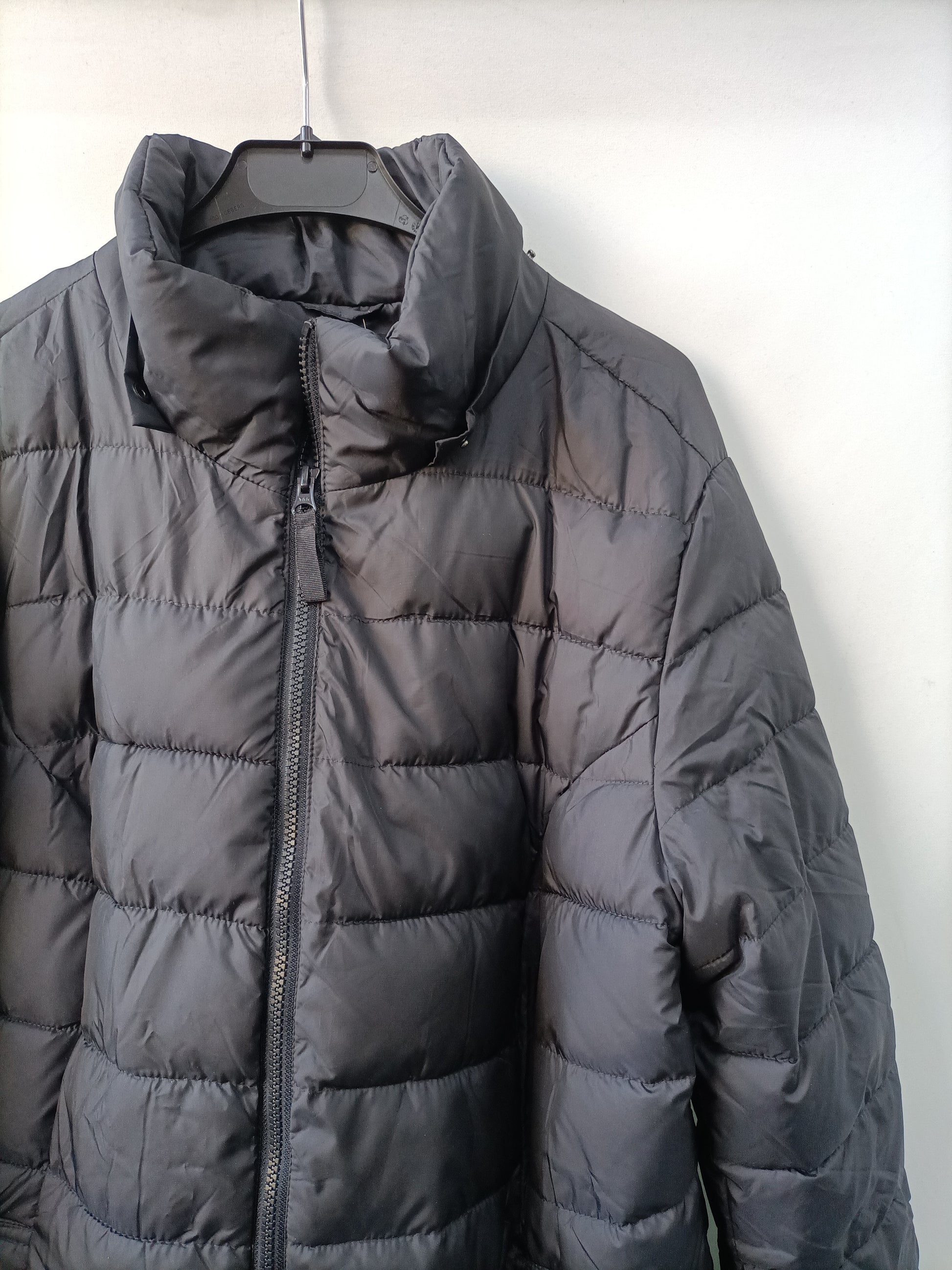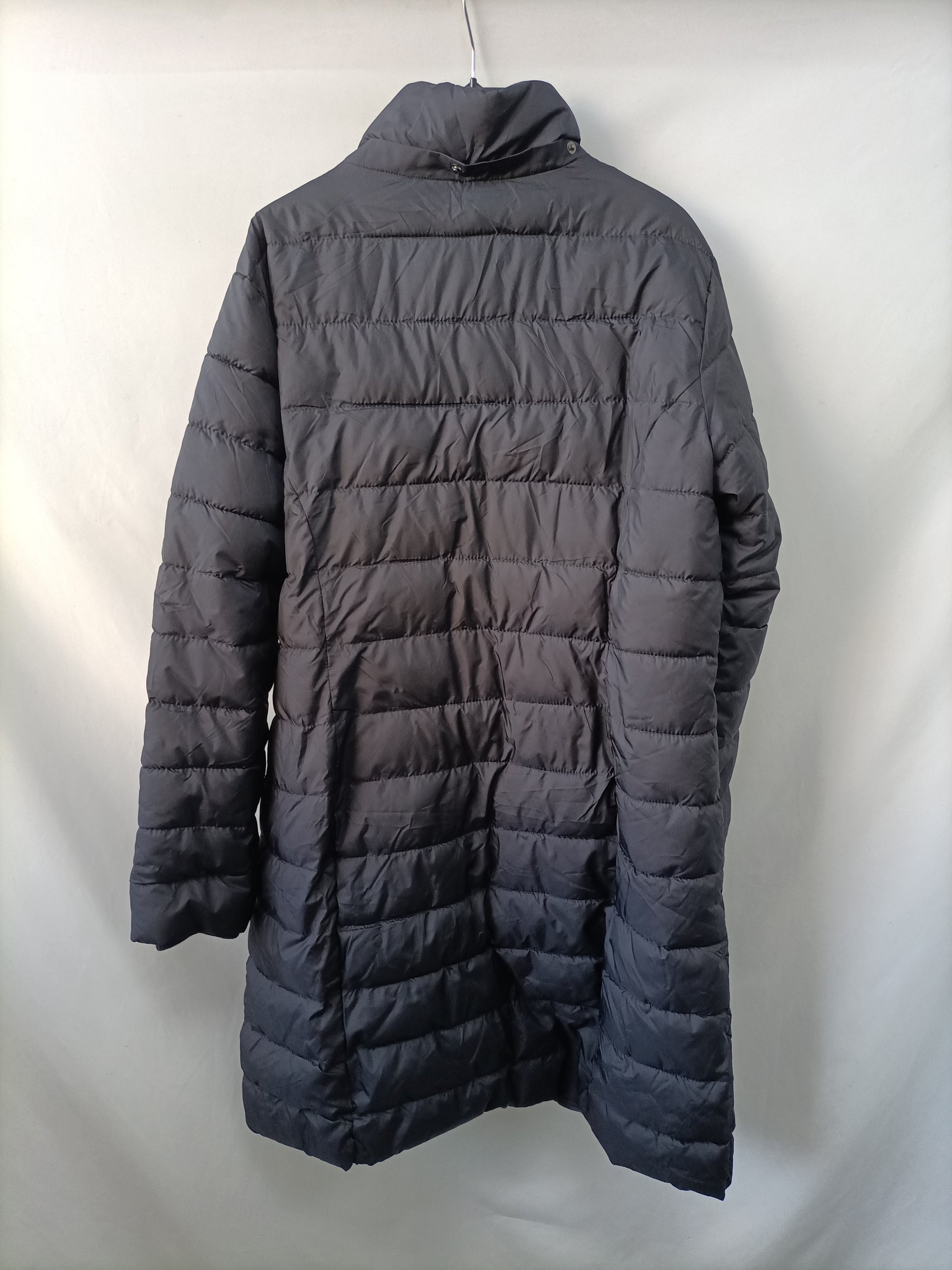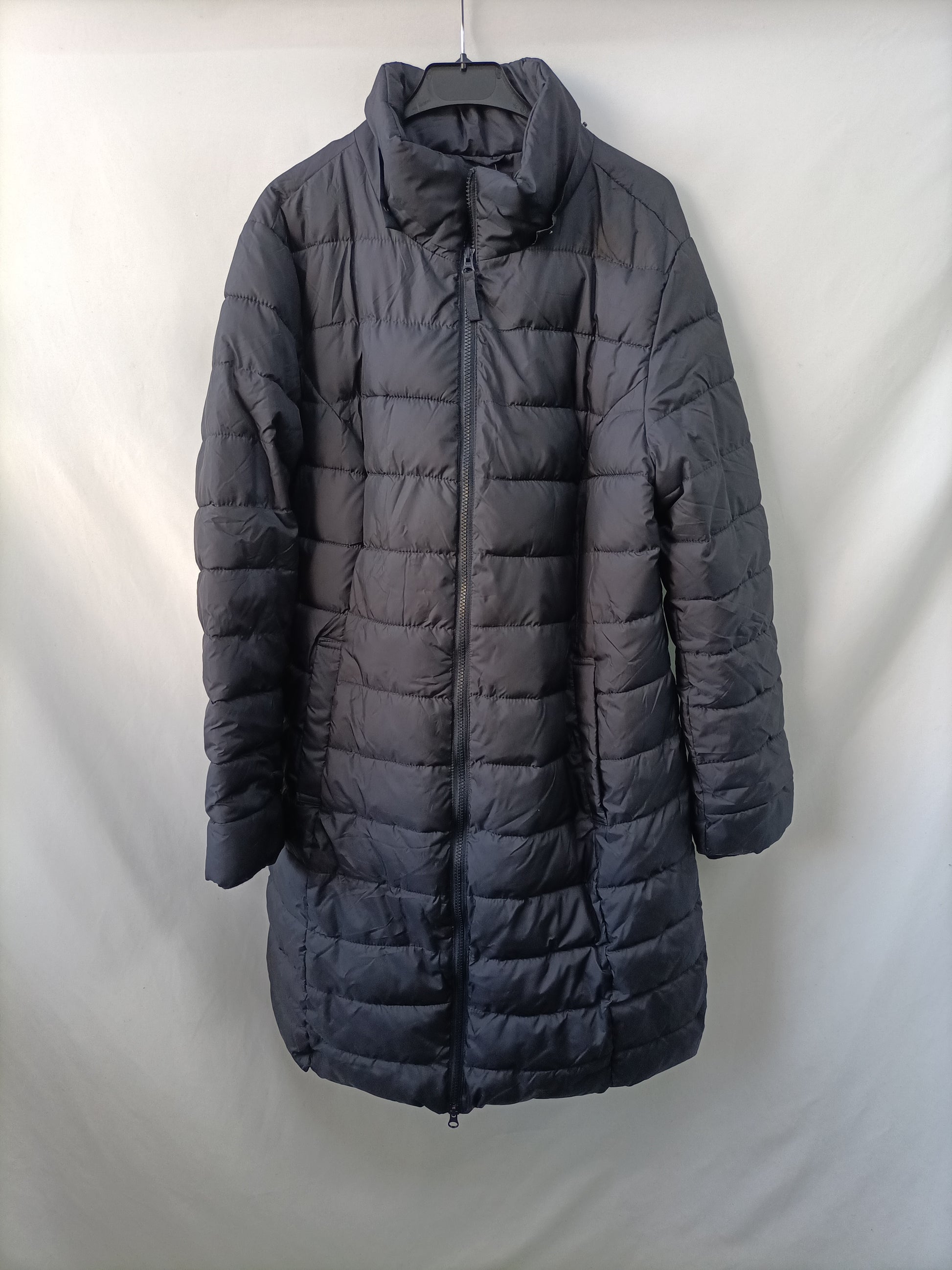 Long, lightweight navy blue down jacket. Zip fastening. No stretch. 60 cm from armhole to length: 103 cm (hood missing).