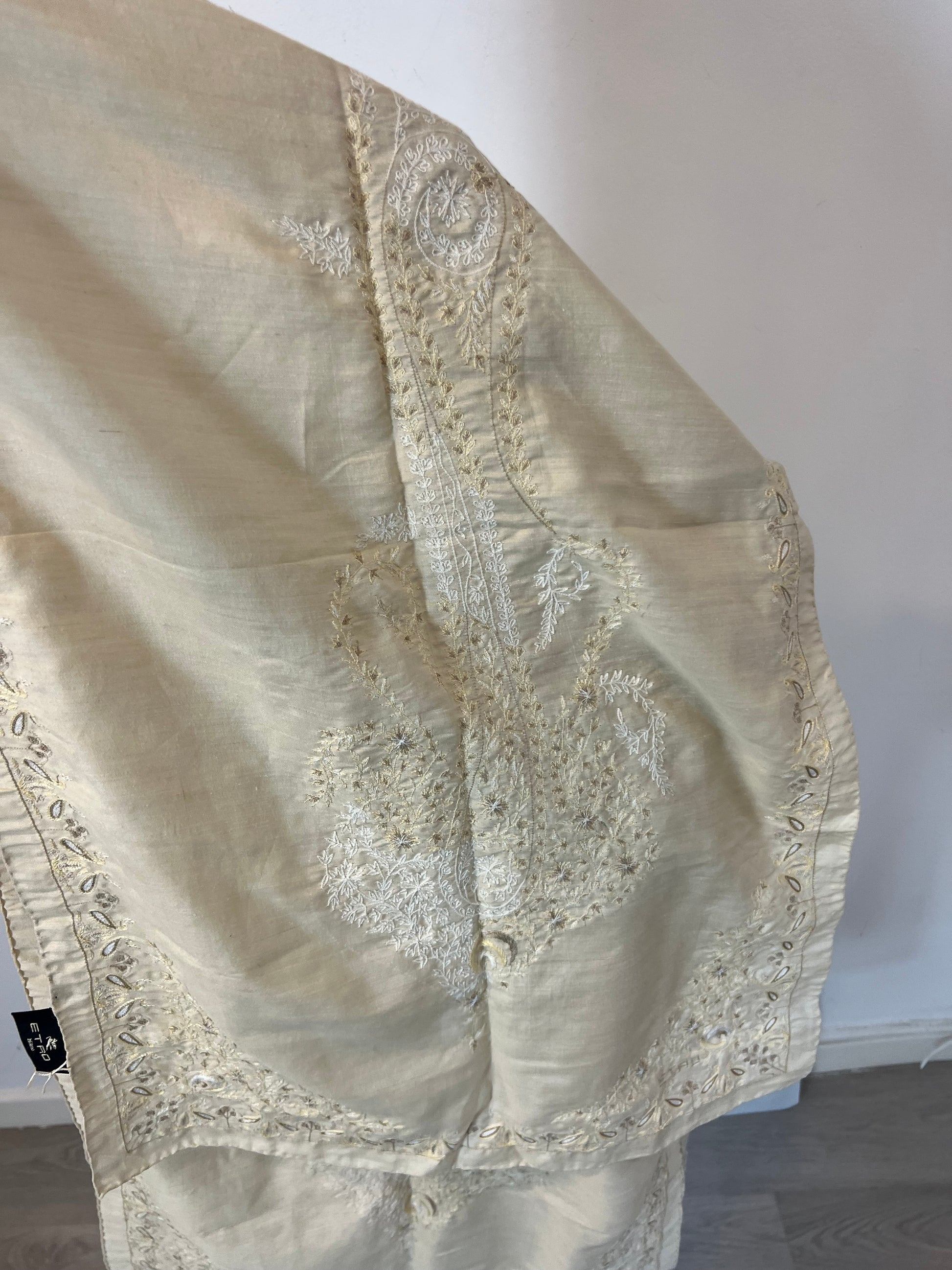 ETRO. Beige silk scarf with embroidery