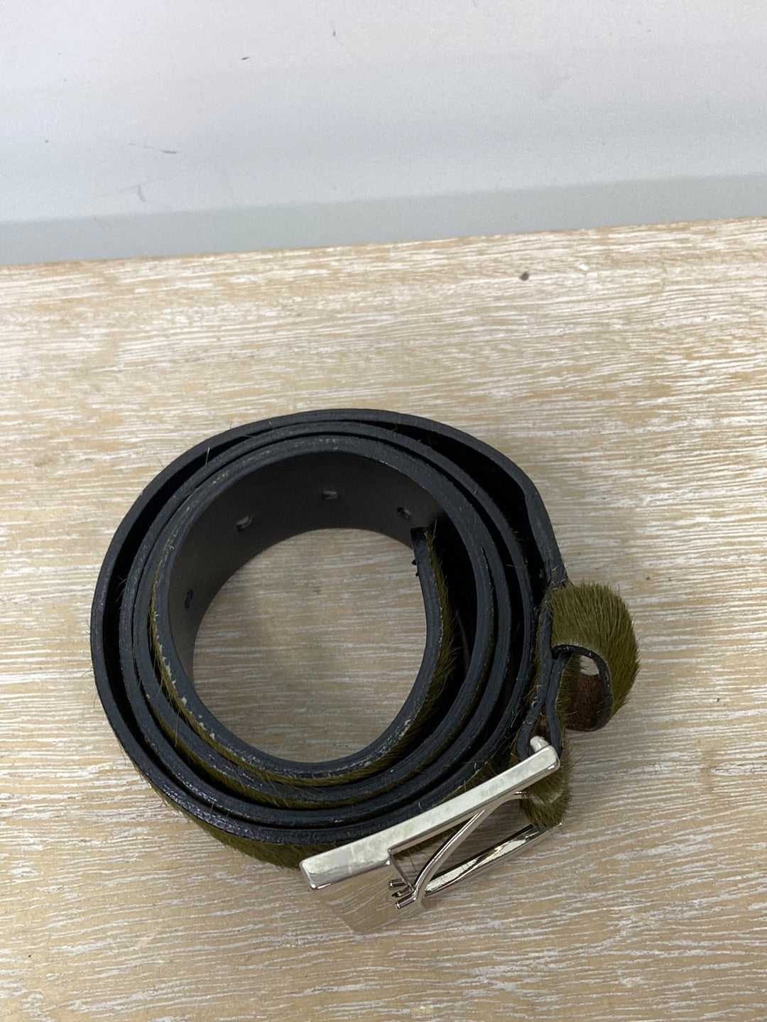 Cinturón de piel con pelito verde