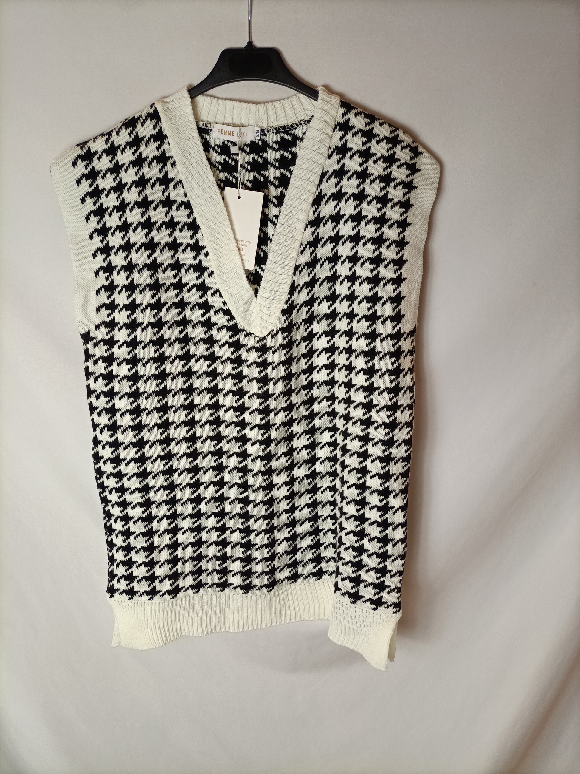 FEMME LUXE. Houndstooth sleeveless sweater. TS/M