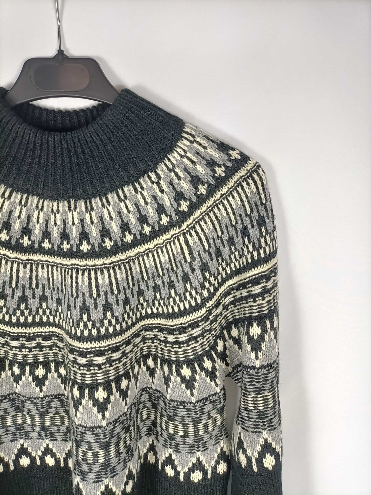 Find. Oversized black printed sweater. Stretchy and chunky. 75 cm long.