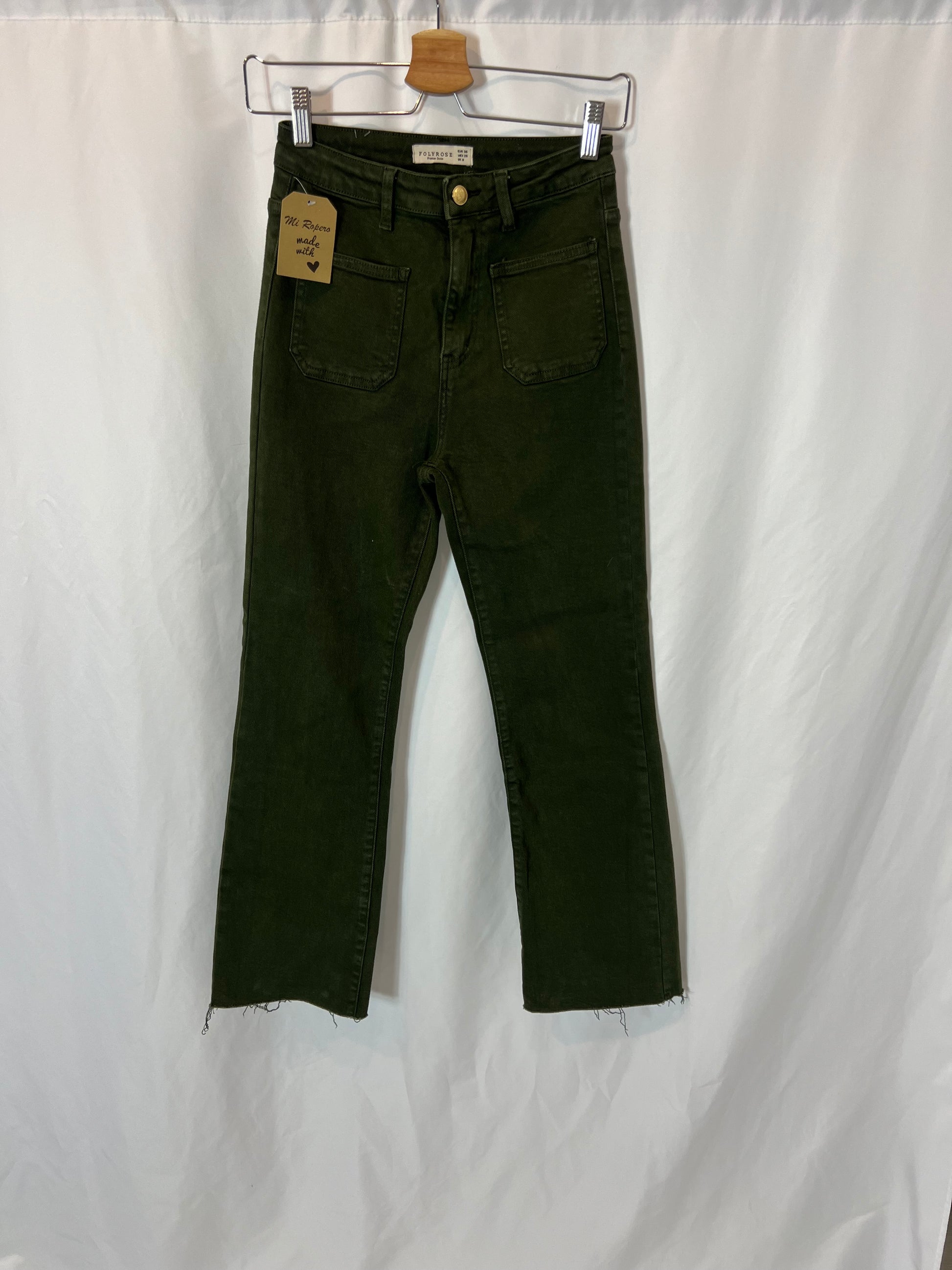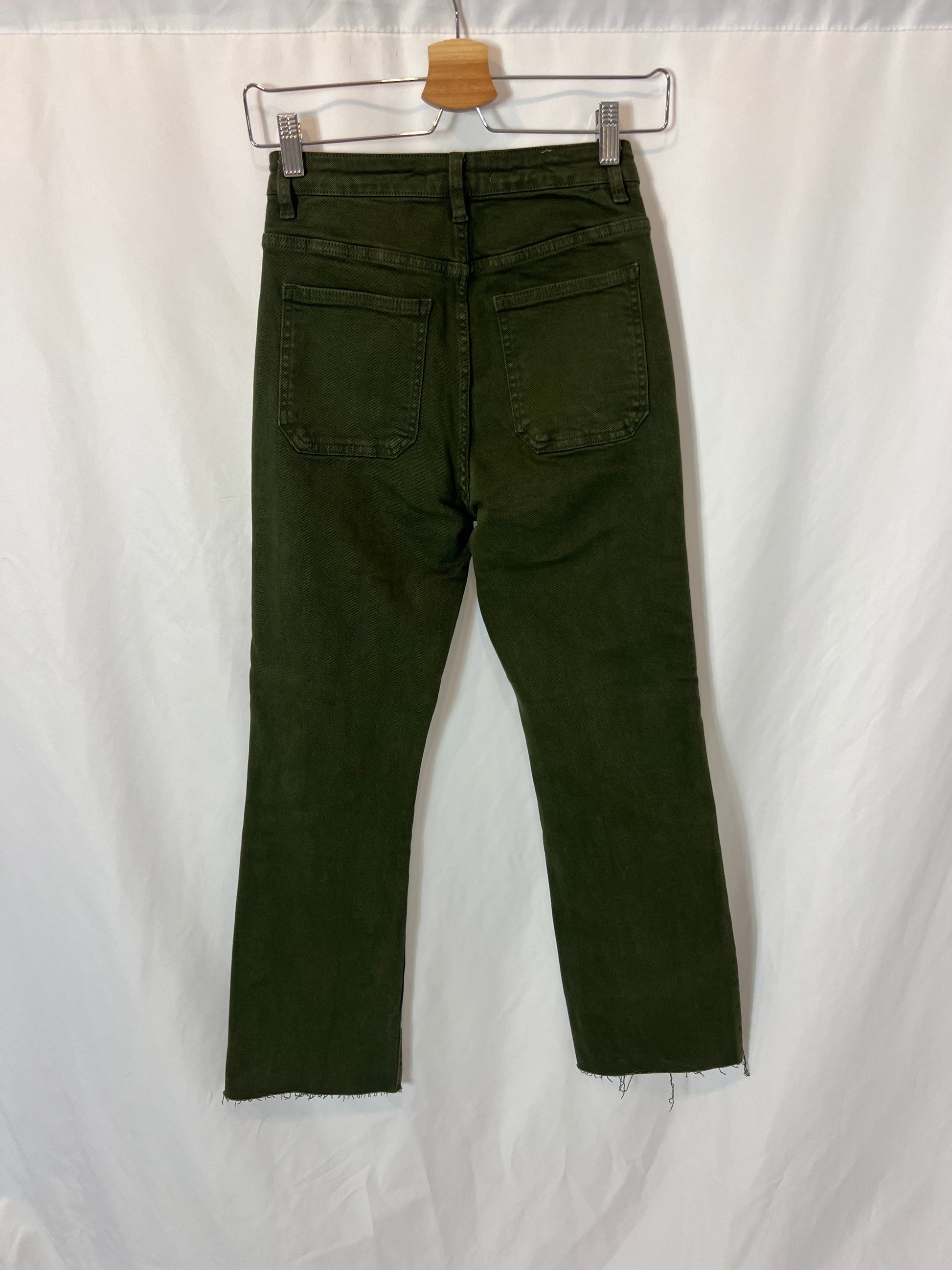 NUEVO CON ETIQUETA. Pantalón verde ligeramente acampanado. Con mini bolsillos a las vista.. cintura 32cm, largo 97cm