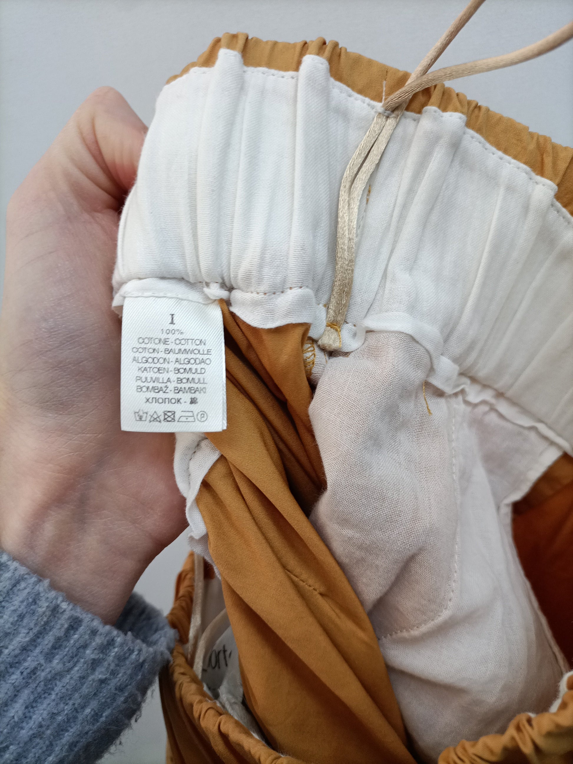 Mustard palazzo pants. Elastic waist. Length 99 cm.