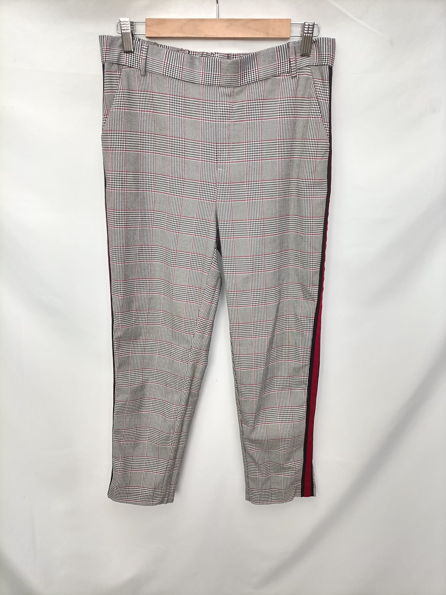 Zara. M. Checkered trousers in shades of gray and burgundy with a side stripe detail. Elastic waist. Waist 38 cm, length 90 cm.