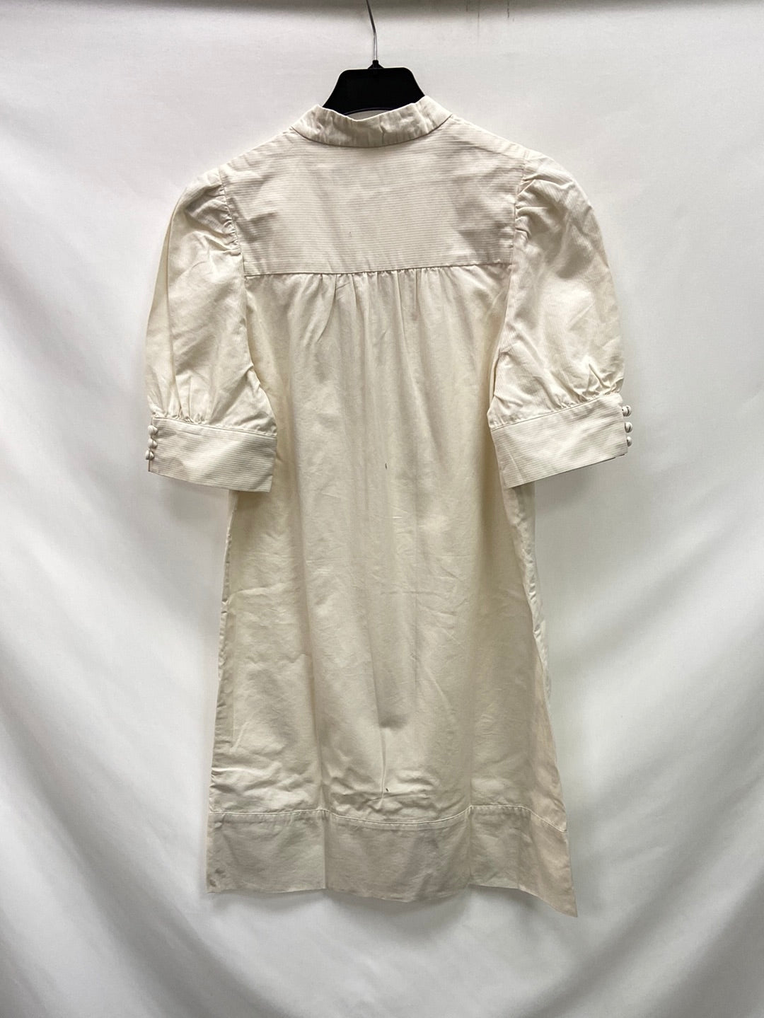 NEW WITH TAG. Short beige dress with button detail at the neckline. Non-stretchy. Length 88 cm.