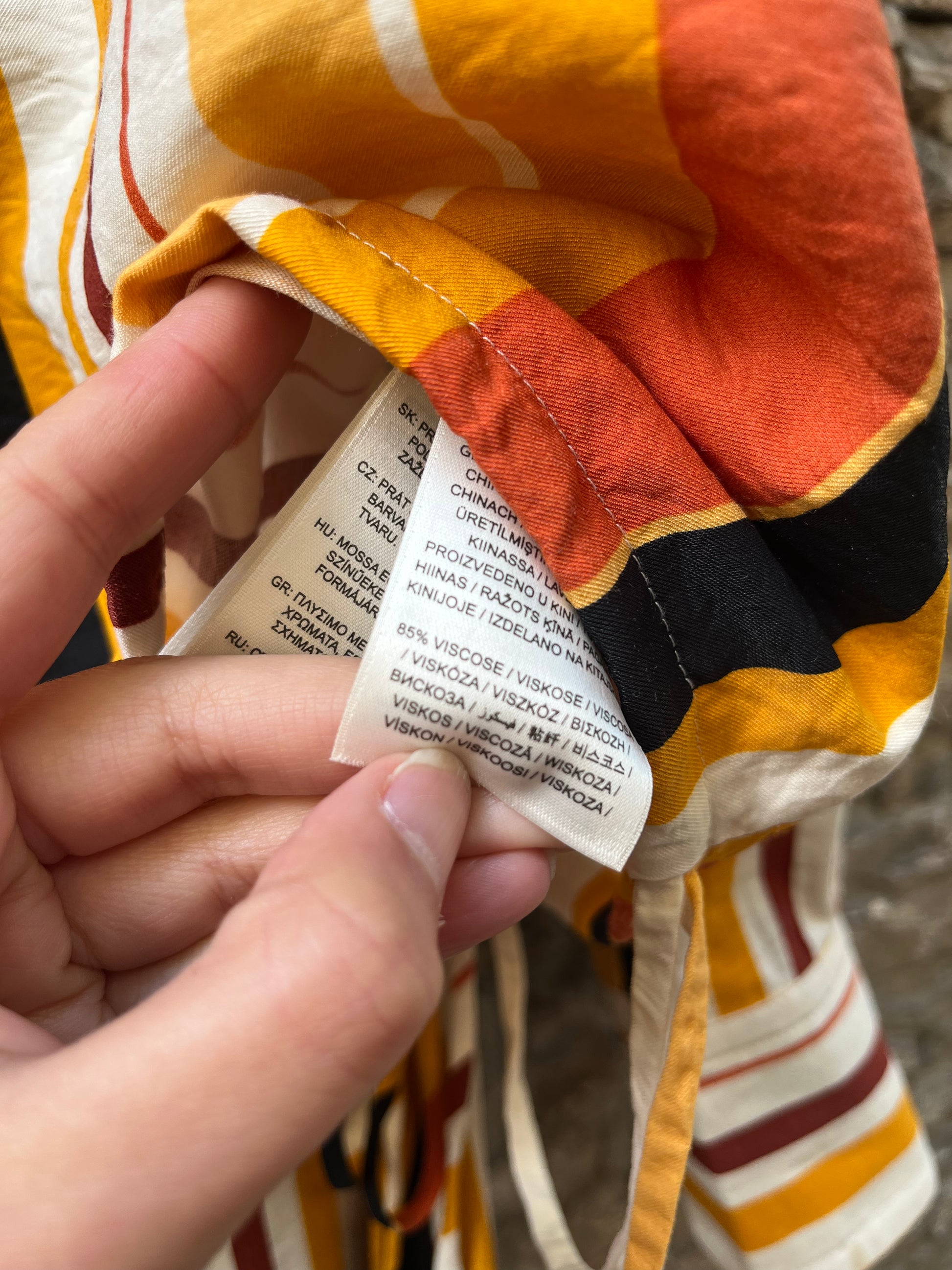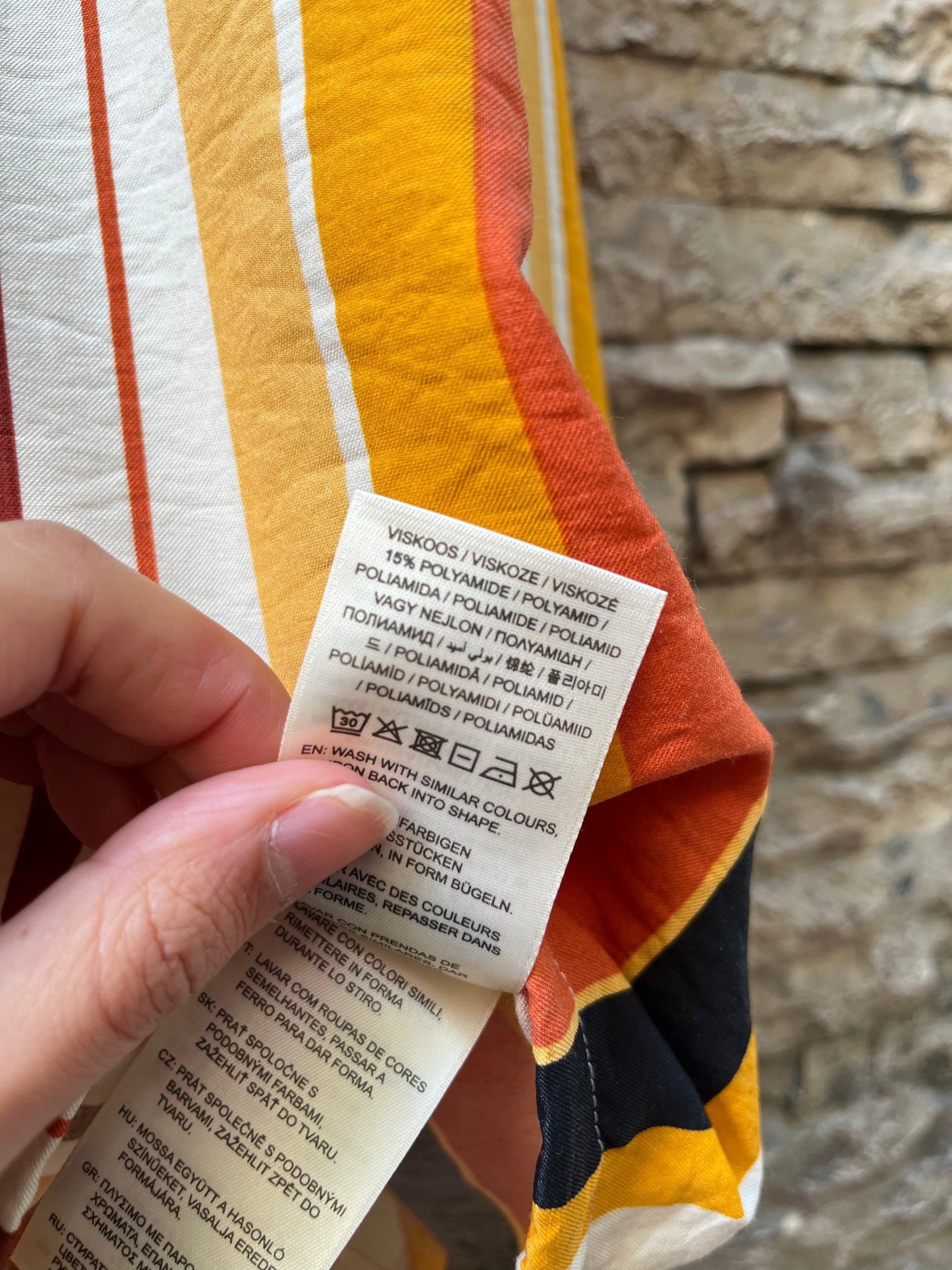 Non-stretch. Top: Back 52 cm, length 48 cm. Skirt: Adjustable waist, length 92 cm