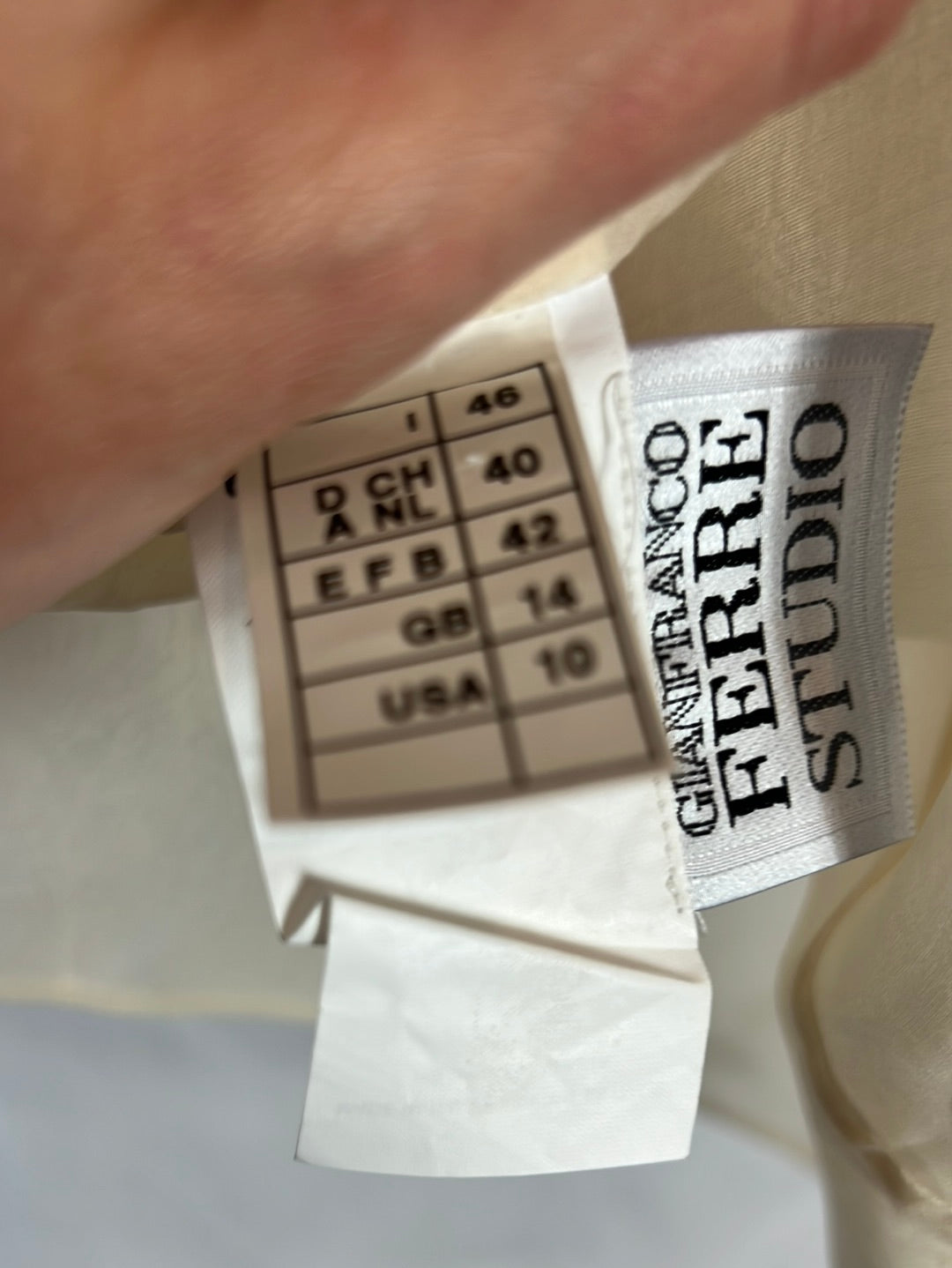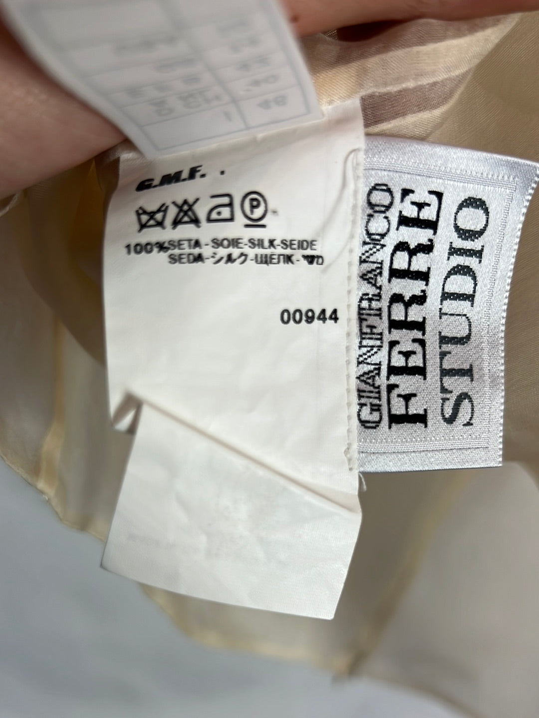 GIANFRANCO FERRÉ. Silk set with sleeve detail. Size 42