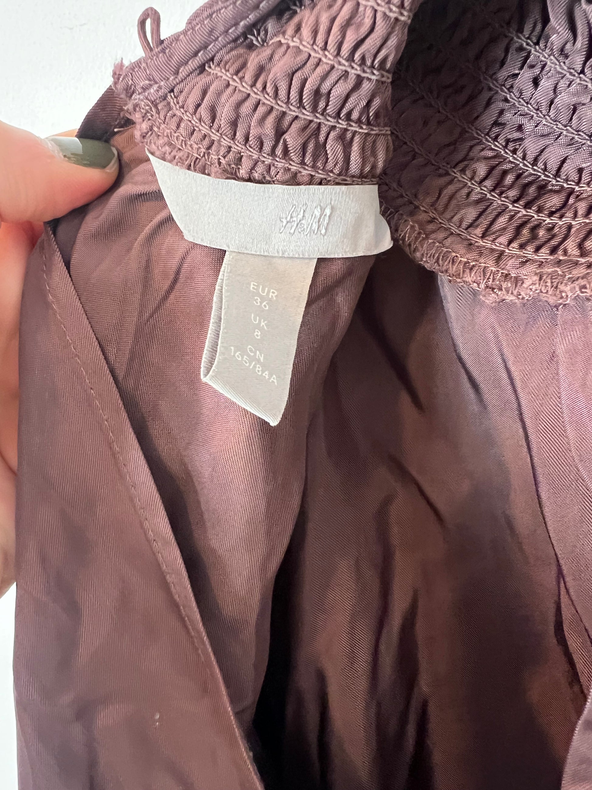 H&M. Brown honeycomb Perkins collar blouse S.36