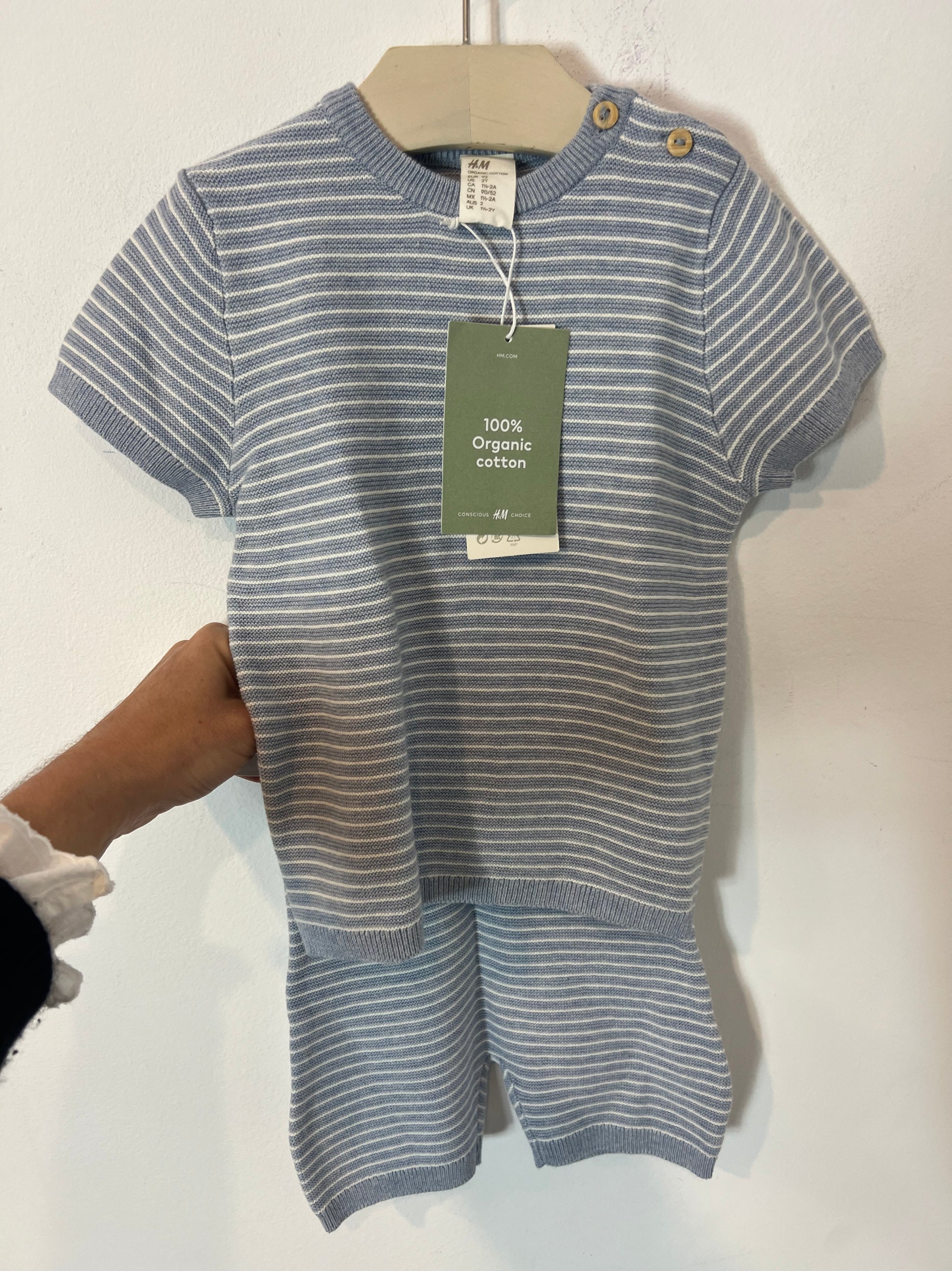 H&M. Conjunto algodón azul rayas. T 18-24 meses