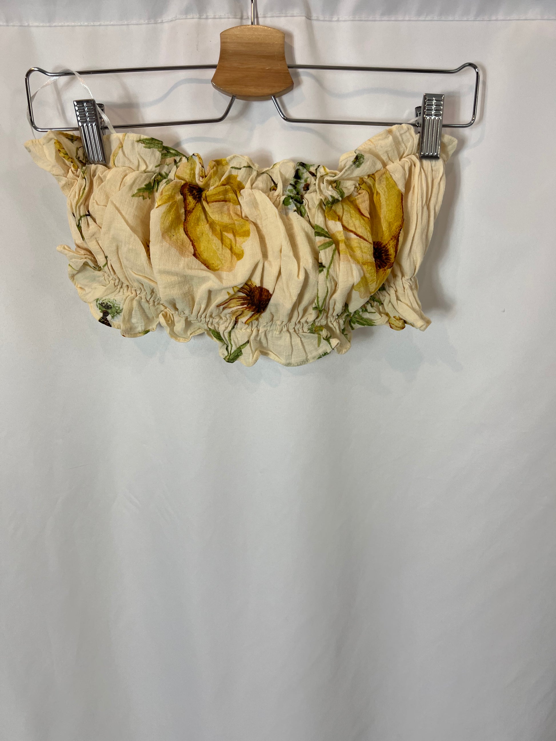 H&M. Croptop beige flores T.xs/s