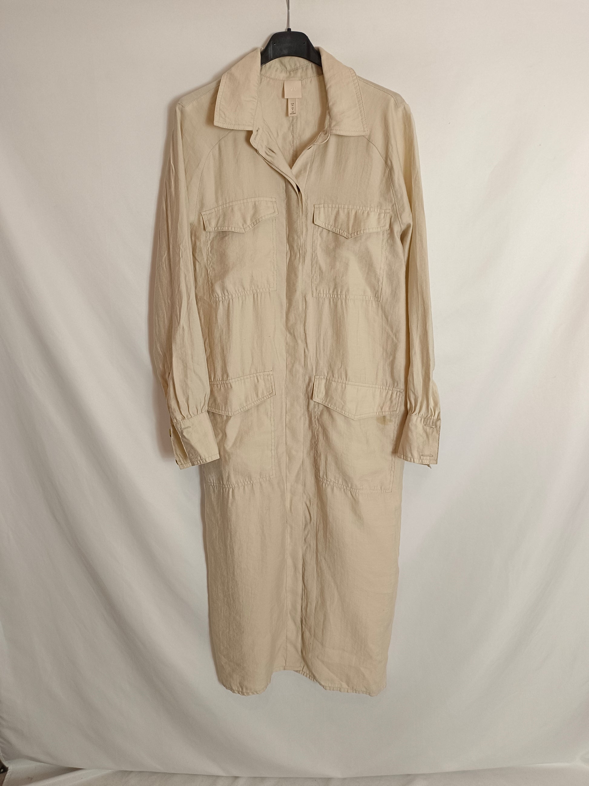 H&M. vestido midi beige T.36