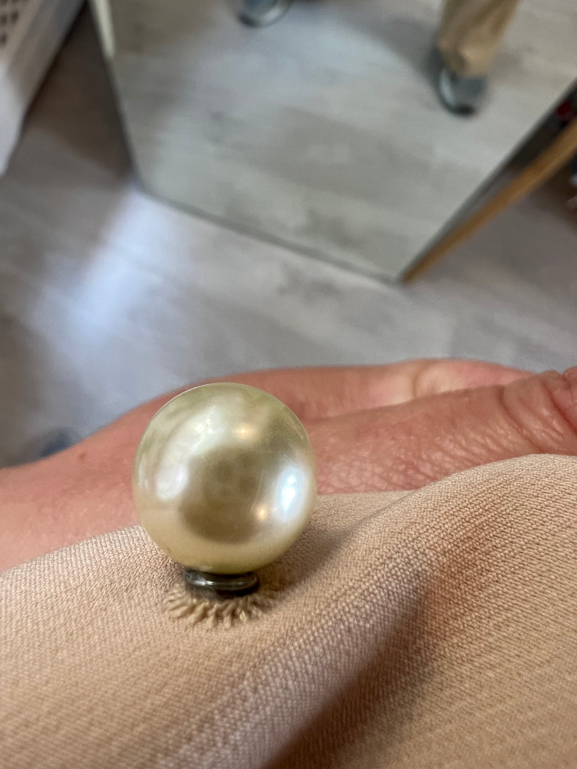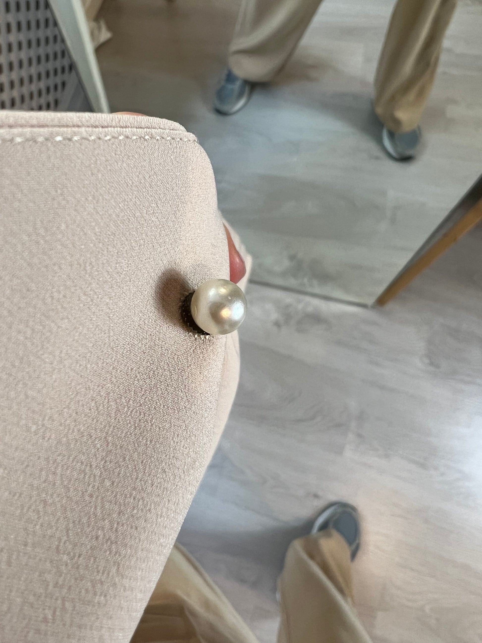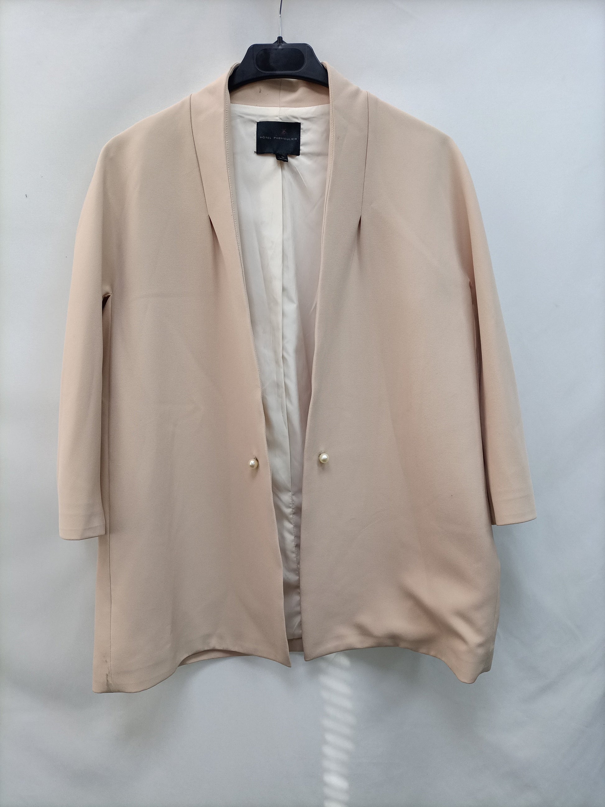 Flowing pale pink blazer with pearl buttons. It doesn't button. 78 cm long. Collar with a small patch (PHOTO)