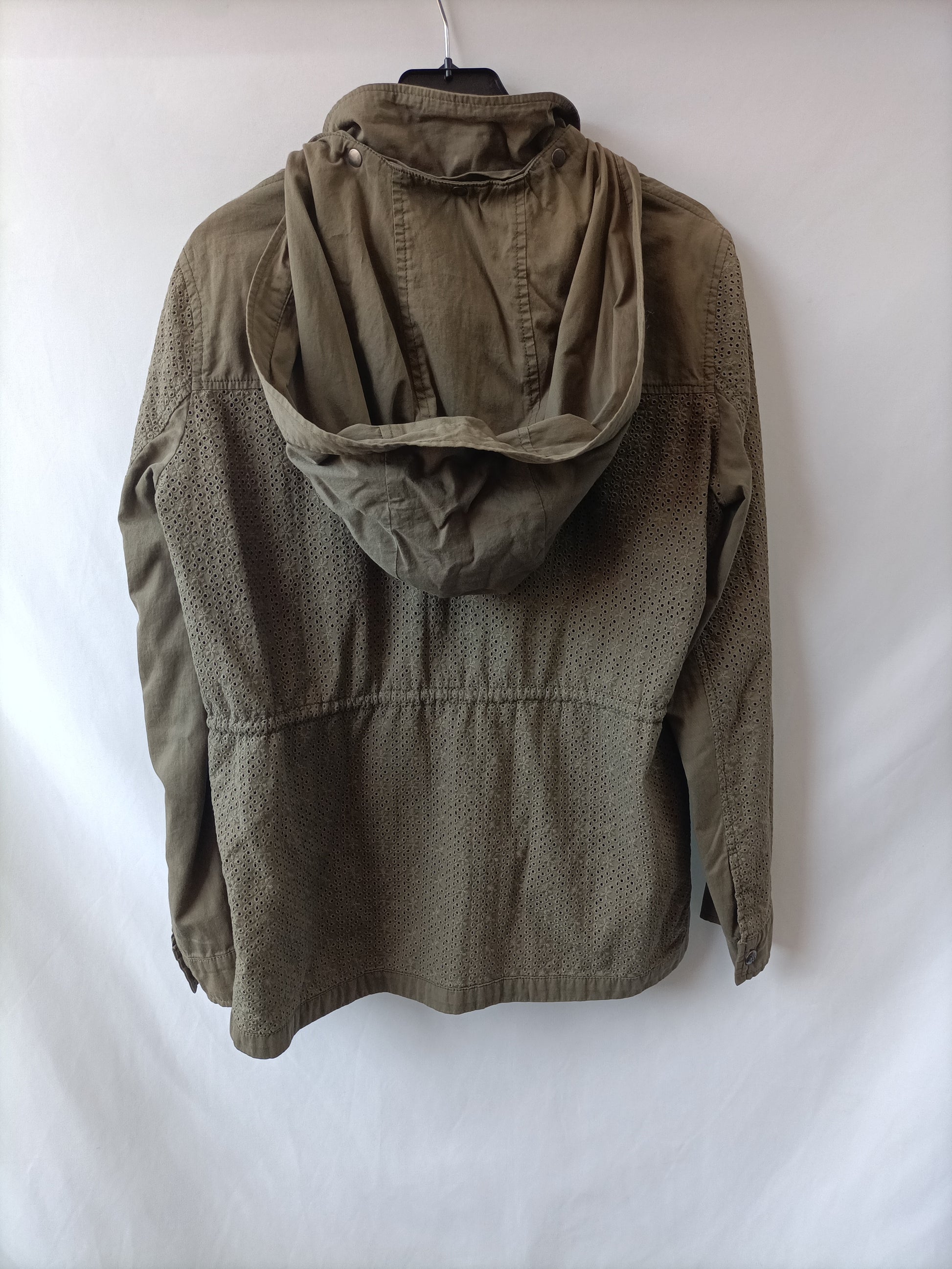 Ikks. Parka verde fluida de tejido troquelado. De sisa a sisa 55 cm largo 75 cm