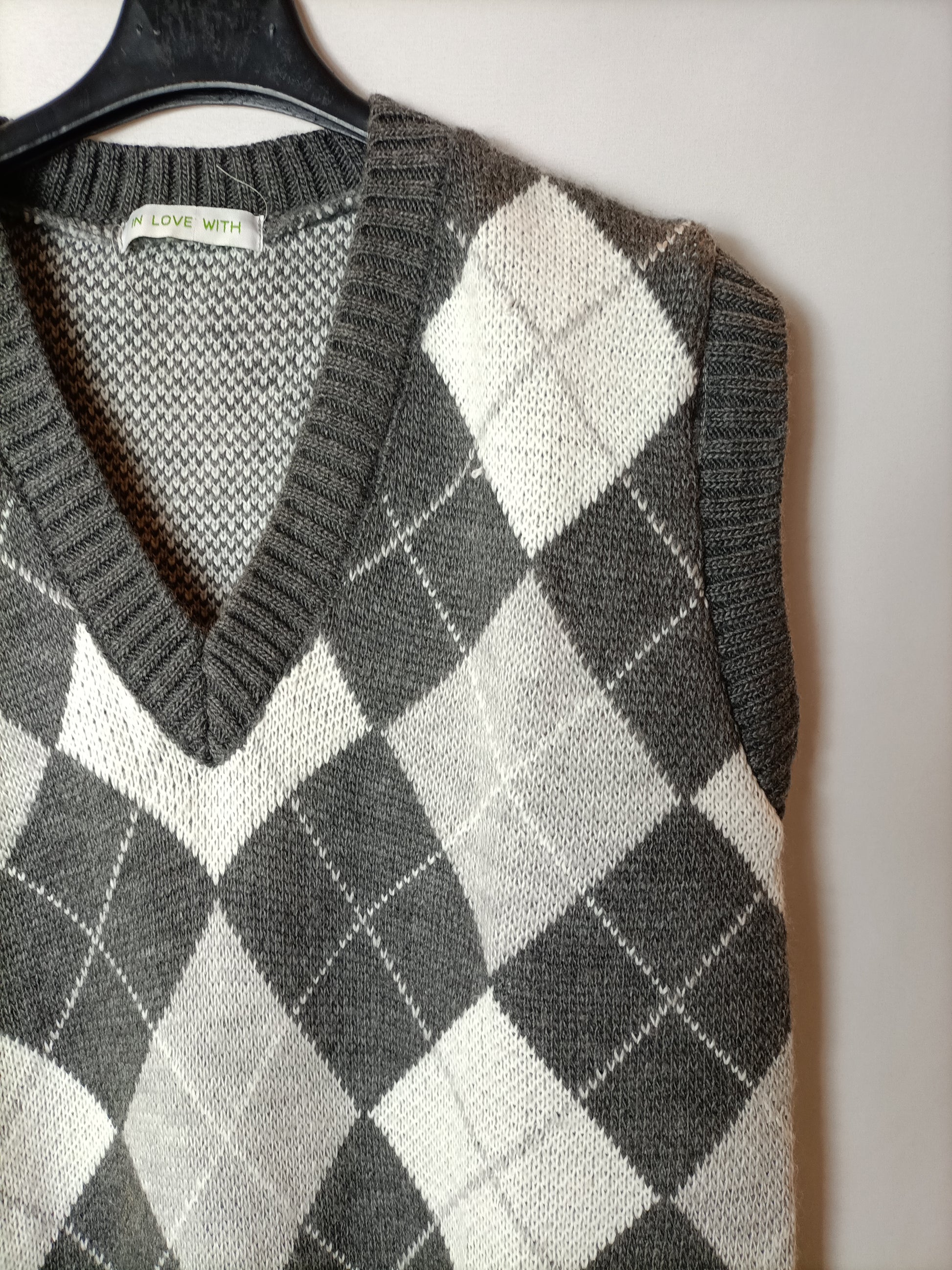 Grey and beige diamond-pattern vest. Elastic. Length 70 cm.