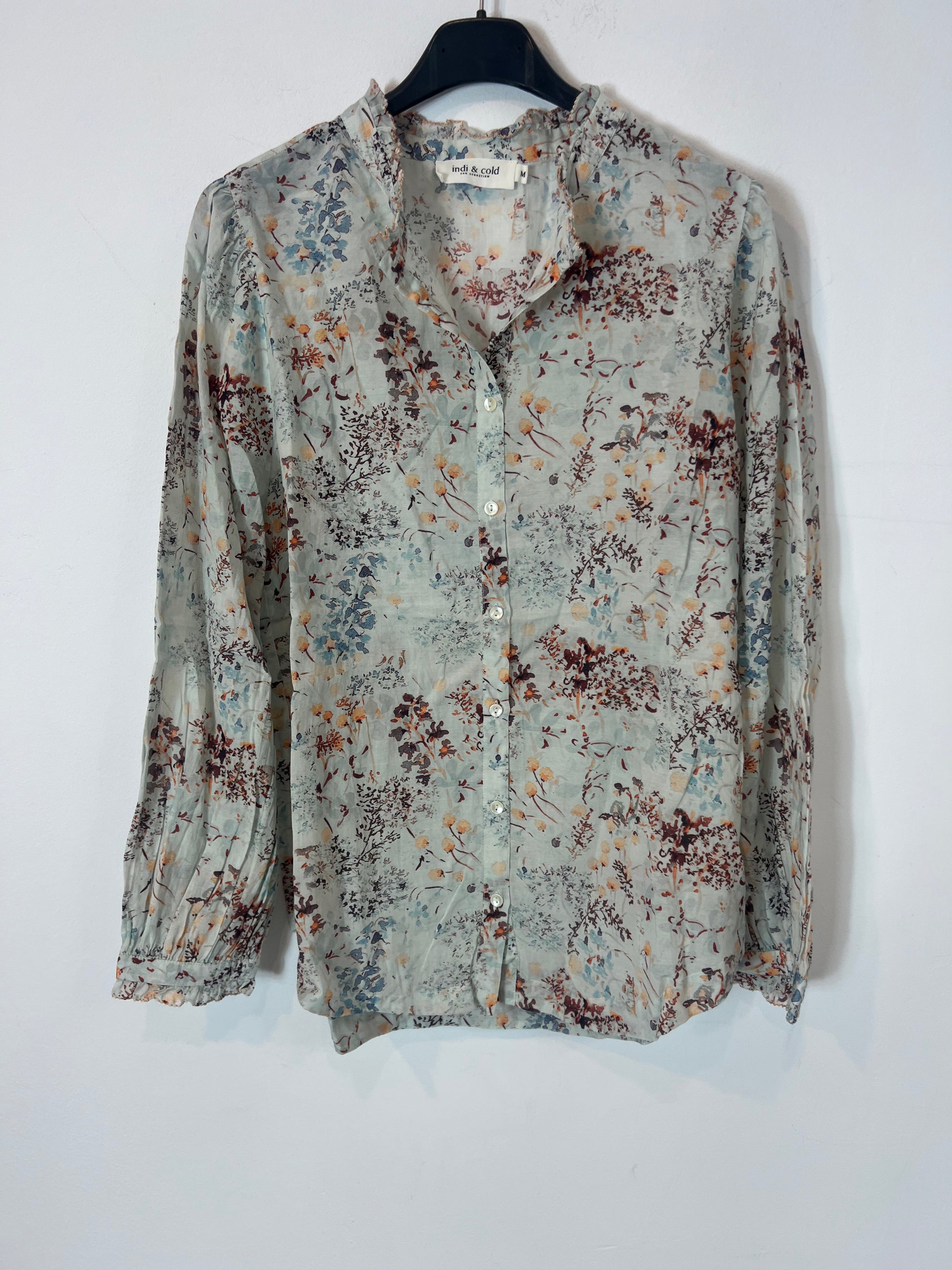 INDI & COLD. Flowy floral blouse with ruffled collar. TM
